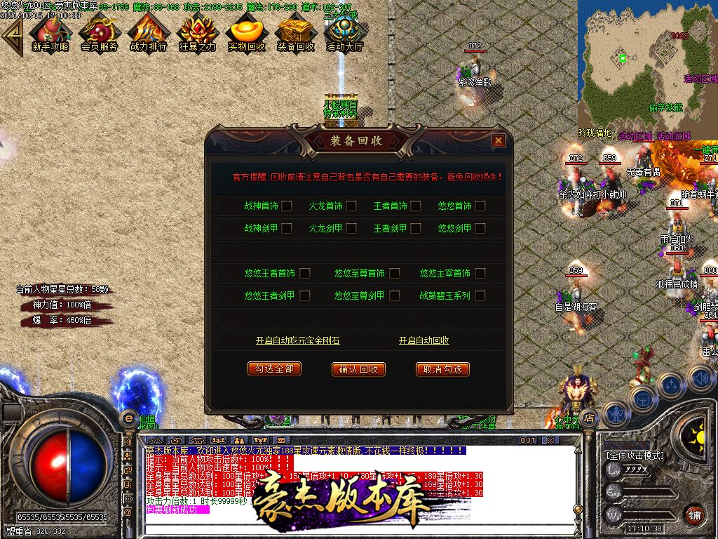 自动拾取 自动回收 自动打怪 全自动 无充值地图 所有地图全靠等级 等级全靠打