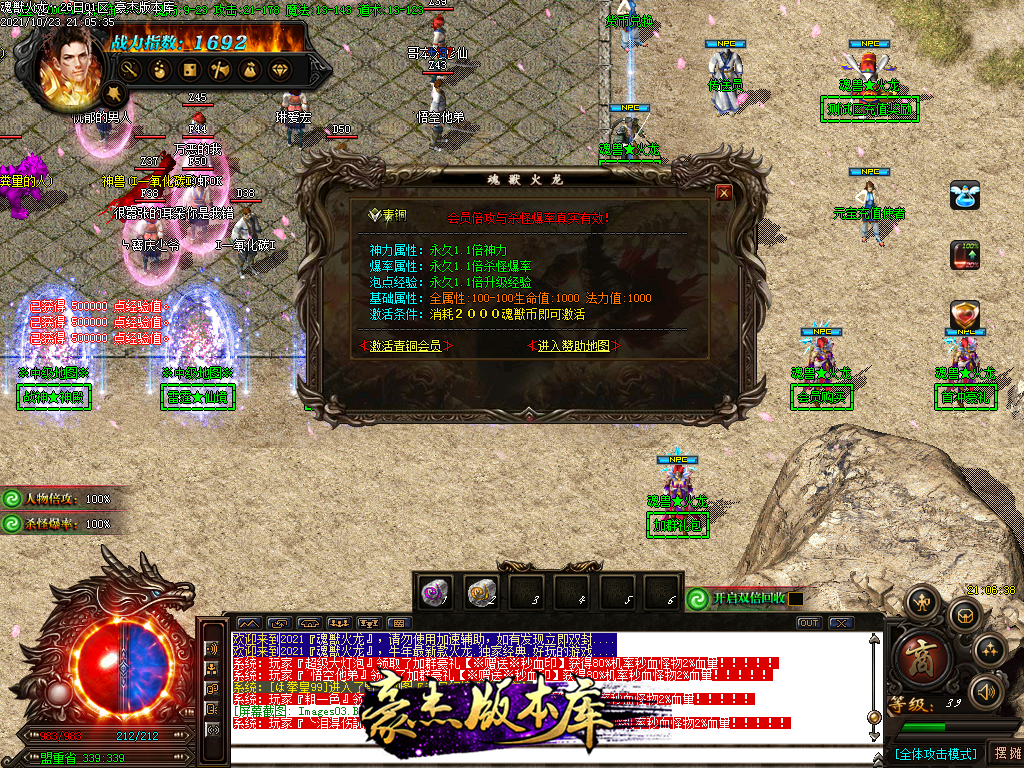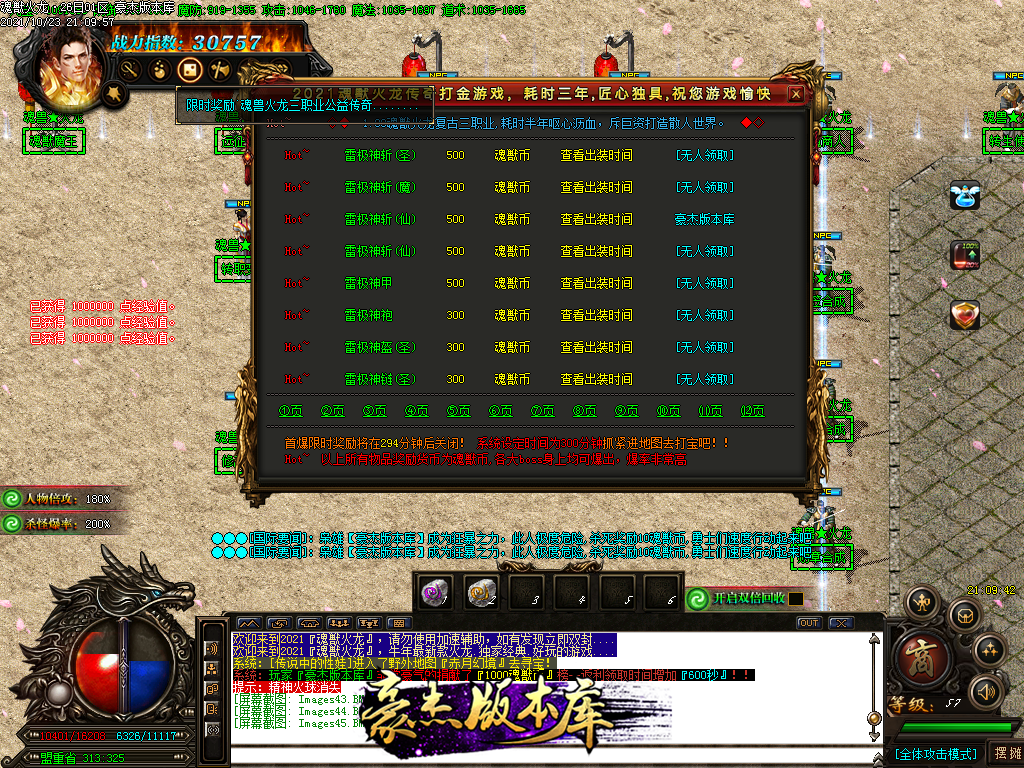 付费购买-魂獣火龙打金三职业传奇版本_盘古插件_带假人带光柱_装备全爆_装备全爆_魂兽火龙