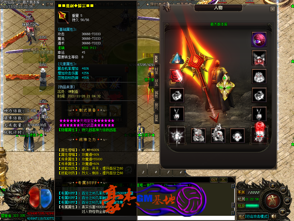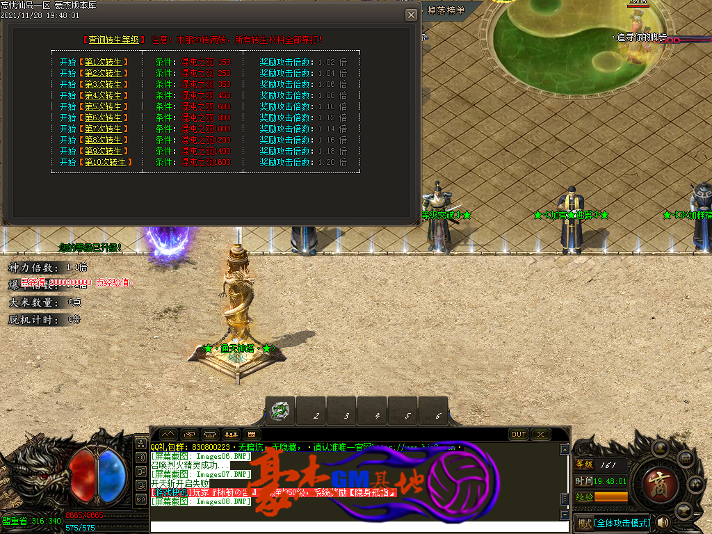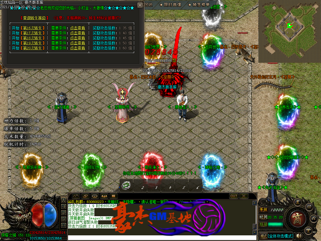 攻击倍数 = 转生获得 爆率倍数=玄门-天门每一层加0.1 601-610 每一级加0.2 |