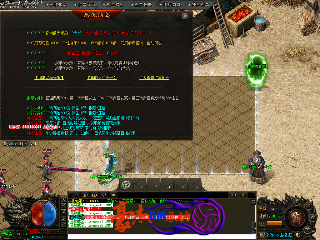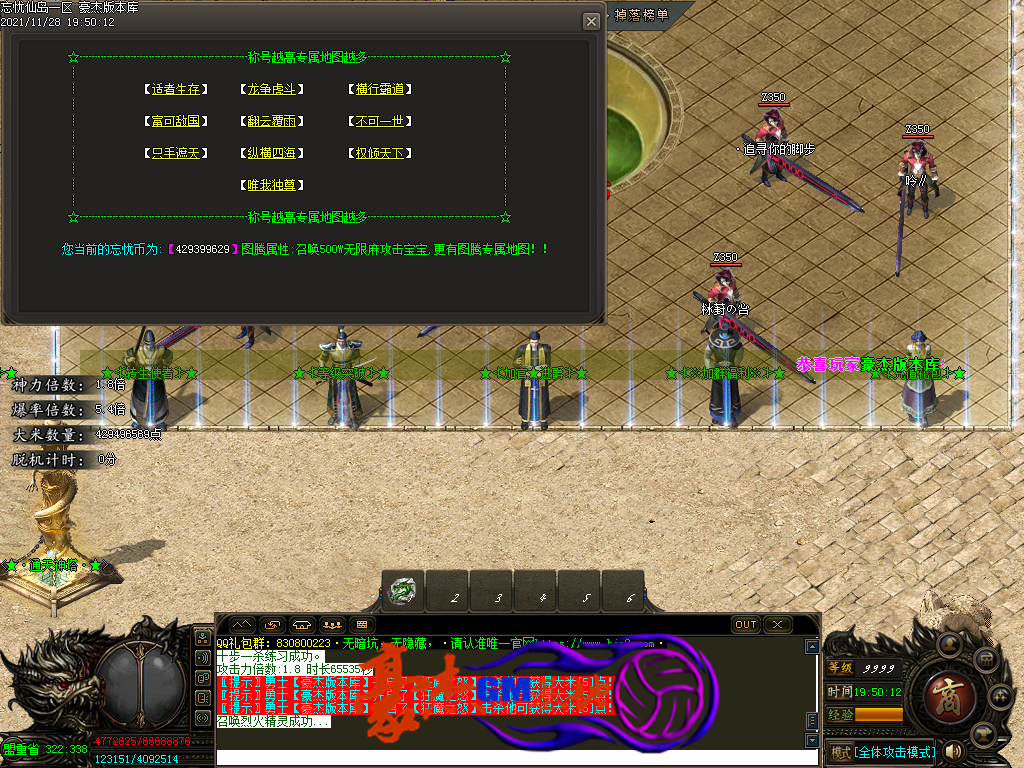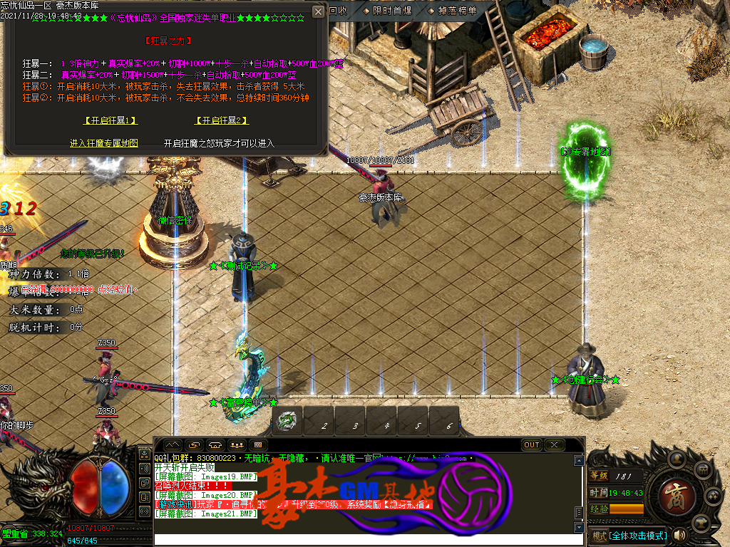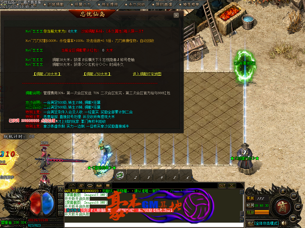 1.小资玩家充值60大米.开启捐献+狂暴 可获得刀刀切割怪物2000万.最高可进入玄门秘境地图 |