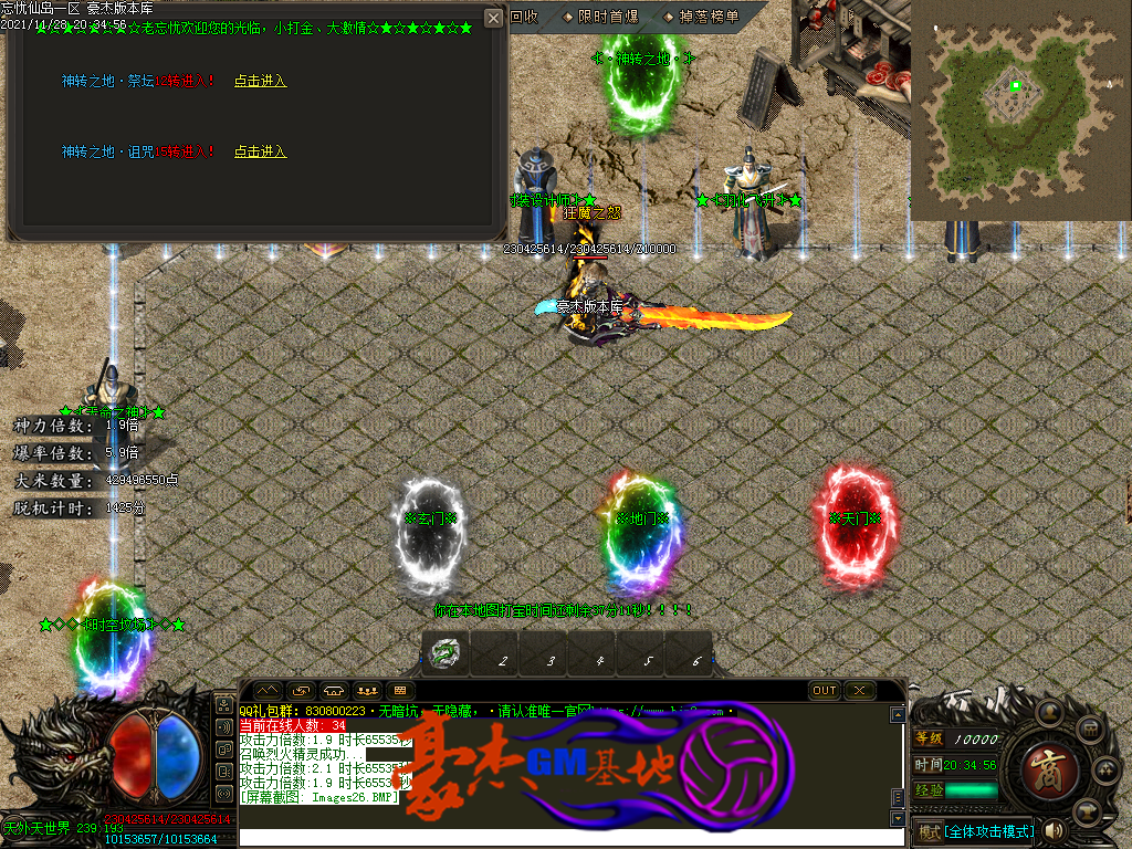2.中资玩家充值500元宝-1000元宝+60大米.领取土城礼包.进入地门无限死磕.惊喜就在一瞬之间 |