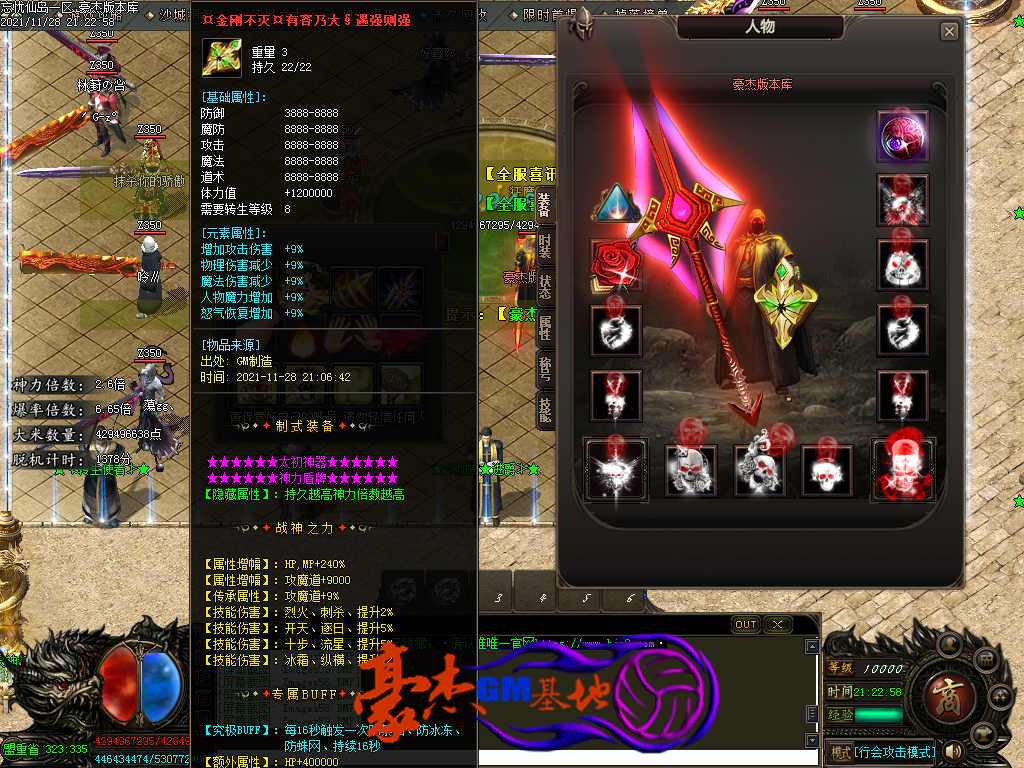 5.装备属性全部重写.剑甲首饰主加攻魔道,特殊装备 时装 主加血。所有装备充分发挥用途