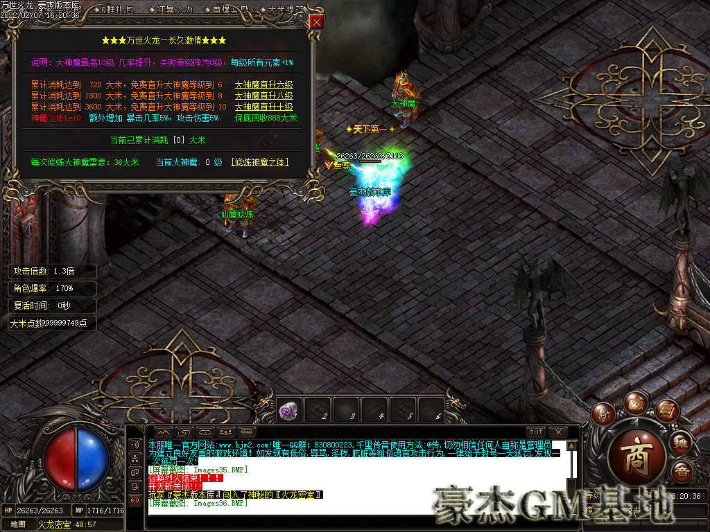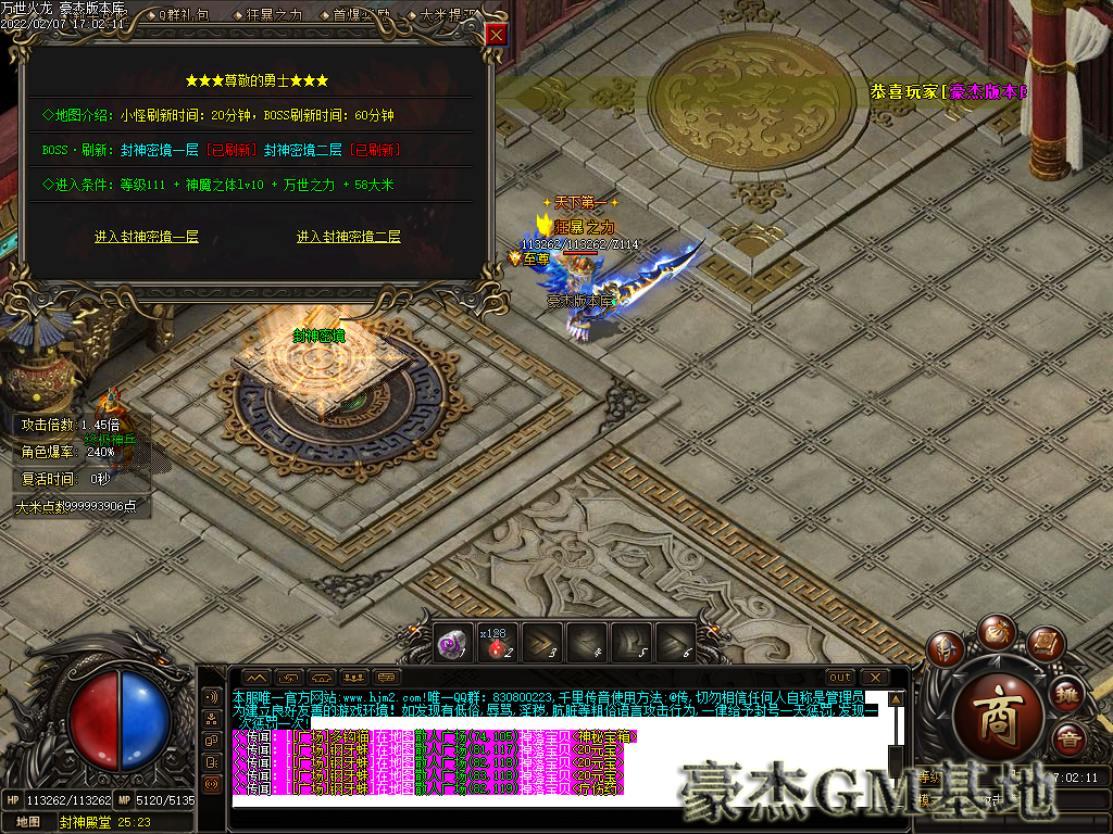\ <土豪激情攻略:/FCOLOR=249><开区直接进入火龙密室点满神魔,特殊全部合满,第一时间进入/FCOLOR=253>