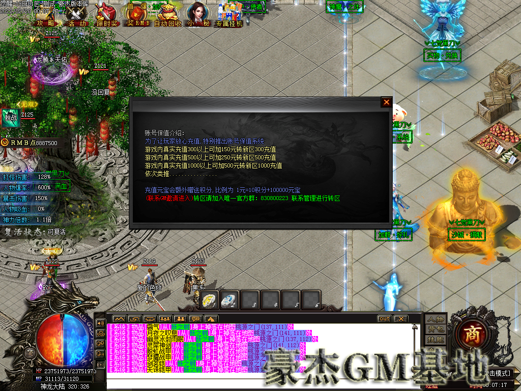 本站支持代销互换开区传奇版本、欢迎广大GM、技术、一条龙等传奇业界好友合作、联系业务QQ:2228204994 ============================================================ 开区端-神之领域之七觉黑刀专属神器单职业传奇版本-ESP插件-带光柱-千件装备-永久回收-实物捐献-高清画质 ============================================================ 本服顶赞只需18元,唯一礼包,无任何充值地图 货币:本服金币只能回收或者打怪与活动获得,游戏内不出售任何金币,前后期需求比较大,散人打金玩家可以售卖金币! 材料:本服基本所有材料只能打怪掉落,需求也比较大,但是挺好打,可以打打材料卖给土豪 键盘数字 1 左边的 ~ 键 点击开启 精灵助手 内含:怪物简装等功能!!! 承诺:不会轻易开新战区 散人玩家通过自己努力也可以屌丝逆袭! ★小资玩家:狂暴10 捐献30 会员18 终极时装130 =188 米 捐献赠送10个+9装备强化珠可以快速提升前期实力(安全区-强化加星-强化转移-珠子左边装备右边) 终极时装:附带切割+免疫所有怪负面BUFF+刀刀群体冰冻+触发无线刀 等等强力属性(安全区-锻造时装查看) ★高级玩家:188+神魔满+称号满+斗笠护体满 =500 米 神魔点满暴击伤害大大提升配合满称号和满斗笠护体打怪爆率和伤害都是质的提高!!! ★充值积分可以购买项链幸运卷和装备强化卷等一些珍贵材料,可以快速提升前期打怪速度!!! (项链强化-装备强化属性最下边有介绍) ★前期玩家,金币别着急获取,先搞一身差不多的装备,有了攻击力,在专心搞金币,兑换金砖,转生! 兑换货币NPC在安全区 左上角!!! 用于兑换转生!!! ★先把武器衣服在安全区 找开光鉴定,(商铺有卖开光石,很便宜)开光了,获得大量属性加成,打怪会更快! ★后边攻击力差不多了,建议找怪集中的地图,金币获取的就会很快!!!一定要开个18会员,自动回收,光速! 狂暴和捐献搞一下,打怪会明显轻松很多,带几率切割de!!! 刚上线玩家建议先去猪洞,桃园.幻境.升到100级 安全区称号升级必须先点了+很多打怪伤害的!!! ★100级之后可以去青云界,青云界大陆进去还有好几张隐藏地图(点开小地图查看),隐藏地图内怪物比较密集,基本不用飞随机找怪 青云界开始基本就能掉落中期的装备了,青云界小怪主要还会掉落专属吸血武器 [青云之上] 如果前期能打到那你基本起飞了 ★115级之后可以进入栖霞界,栖霞界同样也有几张隐藏地图,栖霞界小怪主要还会掉落专属吸血武器 [栖霞之间] ★130级之后可以进入血河界,血河界开始怪物血量会比前面两个地图多,血河界小怪还会掉落专属吸血武器 [血河-嗜血] 前期建议现在以上三个地图发育,等打到吸血武器再去原始大陆,这样会很轻松 ★★★150级了在安全区左上角货币兑换NPC那里兑换金砖转生到10转就可以进入原始大陆,原始大陆开始怪物攻击会比较高,前期没有吸血武器可能比较难打(充值玩家可无视) 原始大陆可以跑通道进入各种大陆,不需要任何条件,直接可以去终极地图,当然前期不建议去,去了也打不过 ★★★前期刚进原始大陆可以先去阿拉德大陆(小地图查看),然后就找白名怪打 或者每个大陆跑一遍 一共有5个大陆可以领庇护称号 每个大陆领取的称号加10%打怪伤害+大量生命值 其他专属大陆也是一样的,优先打白名怪,因为白名不止爆专属装备,还会爆特殊制式武器,首饰类 没装备的情况就阿拉德跟艾泽拉斯来回找怪打就行了 每个专属大陆中间都有个秘境地图 每个专属大陆中间都有个秘境地图 其他大陆走法请看地图走法攻略,前期不建议去因为打的慢,还浪费跑图时间,等血量等级够了可以直接飞 地图爆率:阿拉德专属大陆,艾泽拉斯专属大陆 专属装备爆率挺高 也爆一些制式武器衣服 特殊神佑 特殊首饰 前期发育推荐 地图爆率:火影忍者专属大陆 专属装备爆率爆率中等 无聊可以进去试试运气 几率掉落顶级制式武器衣服 特殊神佑 特殊首饰 中期发育推荐 地图爆率:英雄联盟专属大陆 专属装备爆率爆率中下 无聊可以进去试试运气 几率掉落顶级制式武器衣服 特殊神佑 特殊首饰 中后期发育推荐 地图爆率:山海经专属大陆 此大陆一共 12件专属武器衣服 一个专属首饰 爆率偏低 怪物血量较高 后期推荐 地图爆率:天庭 冥界 武林世界 几十件专属装备 属性都比较变态,爆率较低 前期打的慢 等打怪快了再去不建议去 ----玩家 遇到高攻击怪 拉刺杀 可以提前麻痹或者冰冻怪 剩下的只要是骨灰玩家应该知道怎么打了!!!--- ★★★充值玩家攻略: 会员-捐献-时装带的切割是可以叠加触发的,全部有了,打怪非常快!!! 称号+神魔点满了爆率嗷嗷的!!! -有条件的可以在搞个128RMB充值,把终极时装搞了(打怪轻松必备-神装!!!) -顶级时装是必须搞得,安全区右下角-锻造-时装NPC(赞助礼包左边) 带刀刀群体冰冻! 很重要!!!进入高危险领域防身必备!!! -顶级时装是必须搞得,安全区右下角-锻造-时装NPC(赞助礼包左边) 带刀刀群体冰冻!! 很重要!!!进入高危险领域防身必备!!! -顶级时装是必须搞得,安全区右下角-锻造-时装NPC(赞助礼包左边) 带刀刀群体冰冻!! 很重要!!!进入高危险领域防身必备!!! -每个区有10万RMB限时回本赚钱也是分分钟的事情 -然后会员商场还可以用积分兑换+9强化珠 +7幸运卷.这样的话起步更快,打怪速度提升巨大! -积分消费的就这些 后期绝无一点积分消费 也没有任何积分地图 称号地图 充值地图 全部免费进 而且本服除了称号需