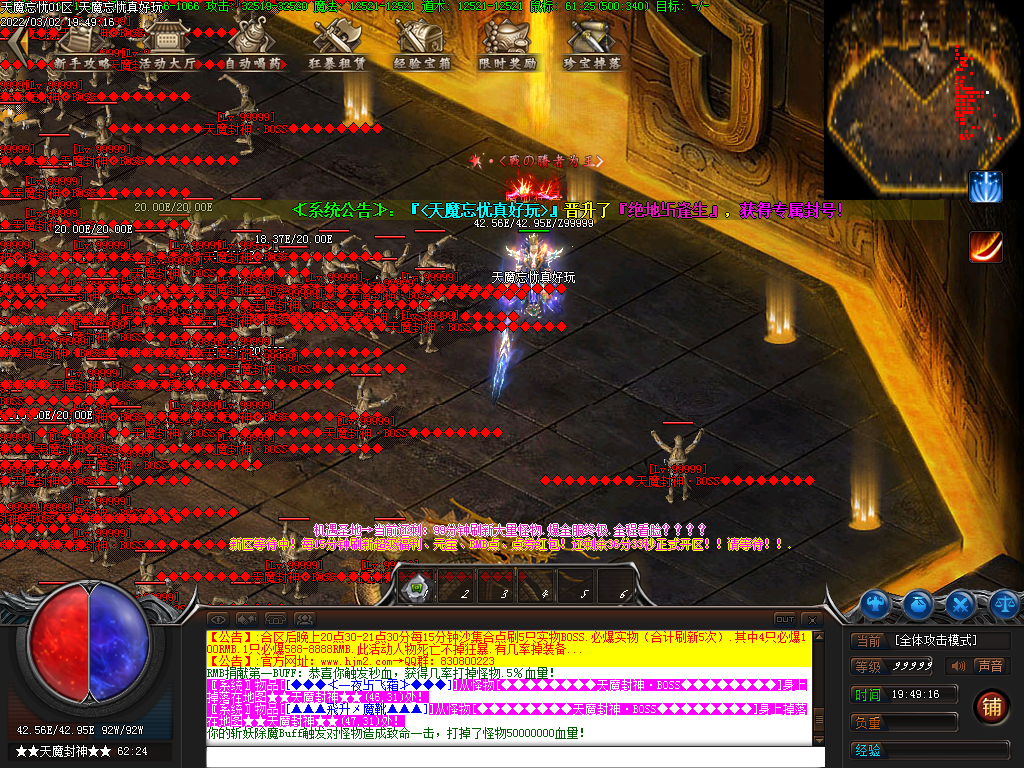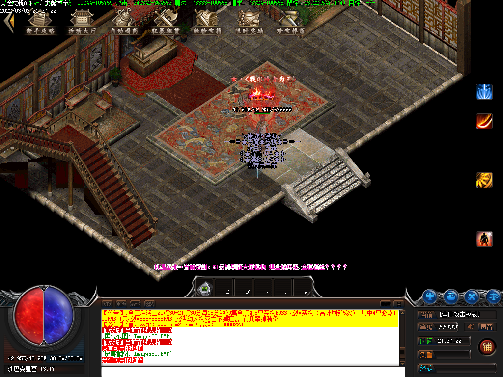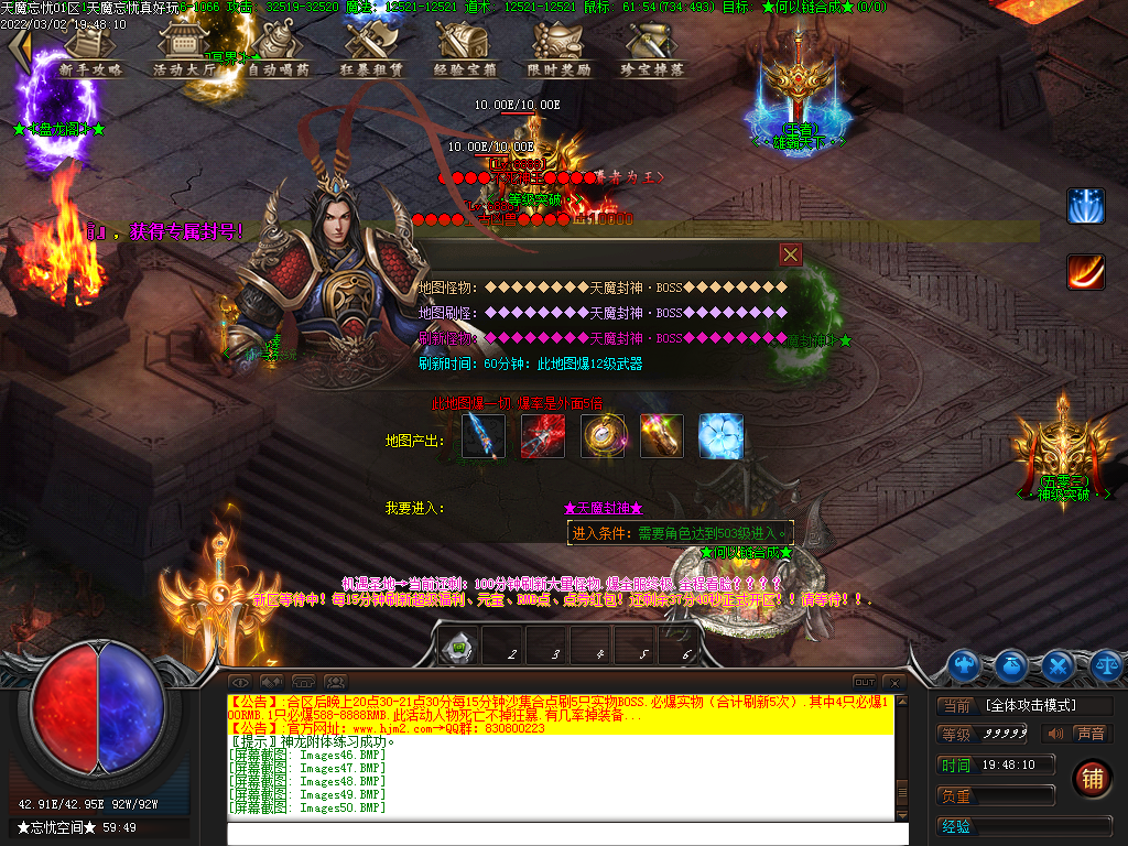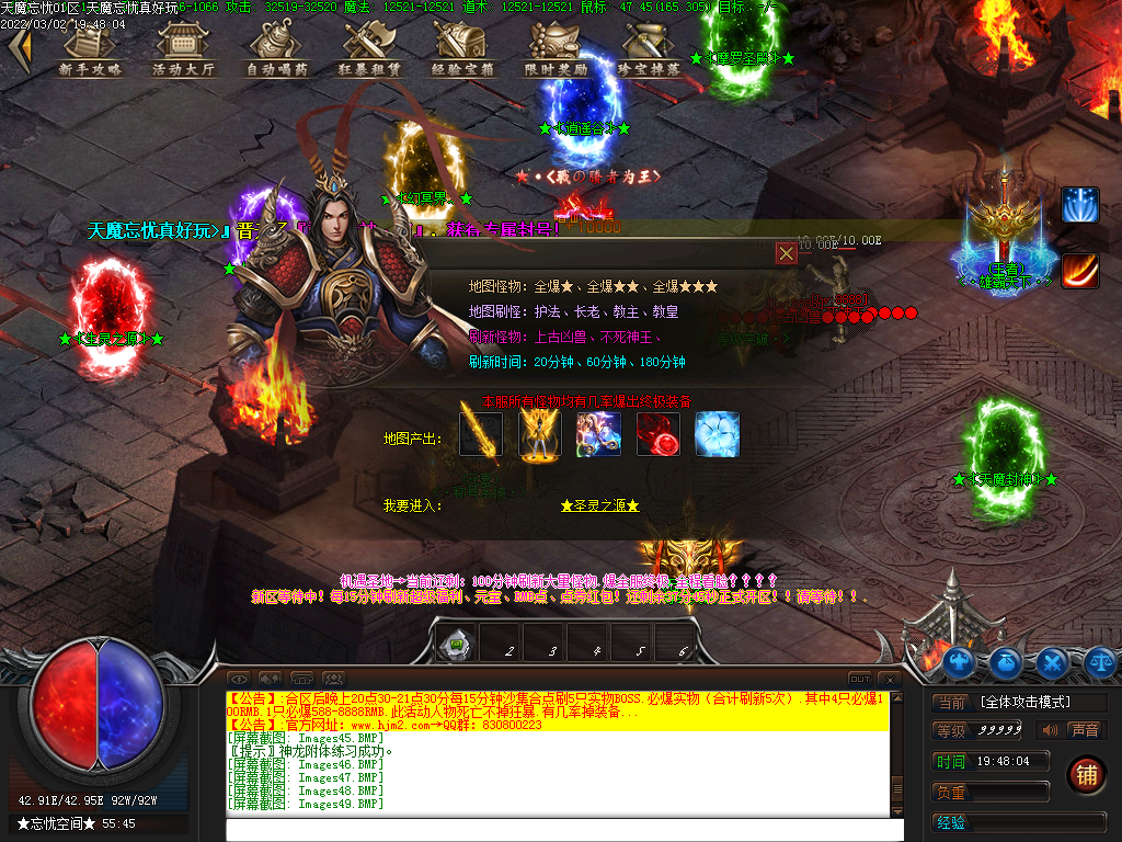 游戏管理⑤ →所有地图在开区6小时后关闭.通天宝藏二层在开区4小时后准时开放.必爆实物8888RMB点