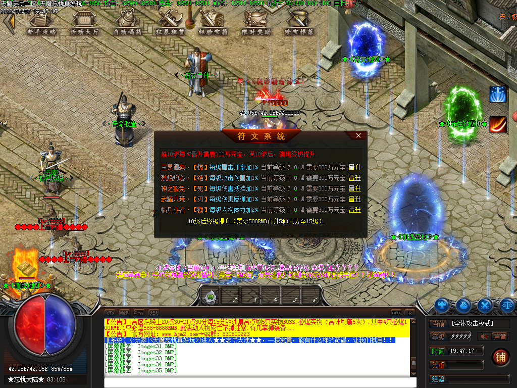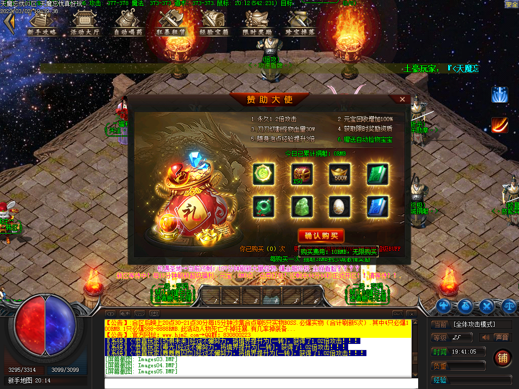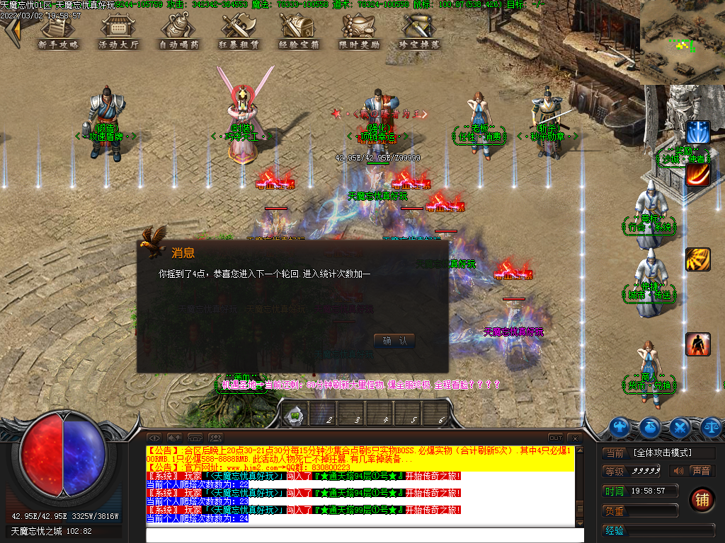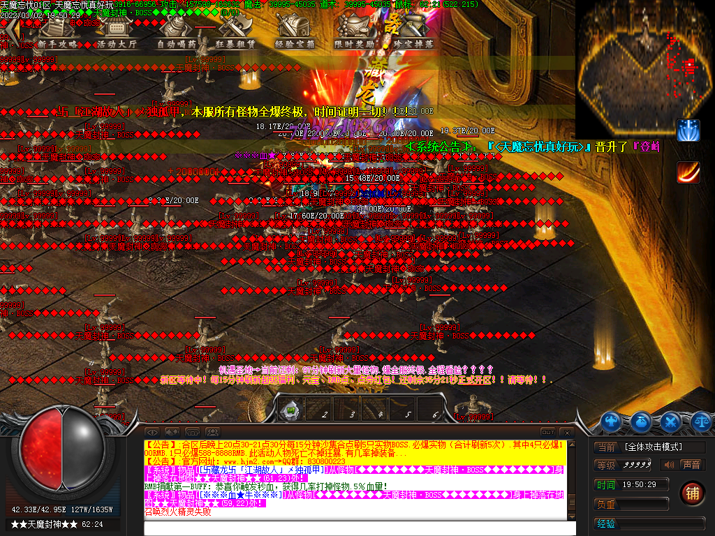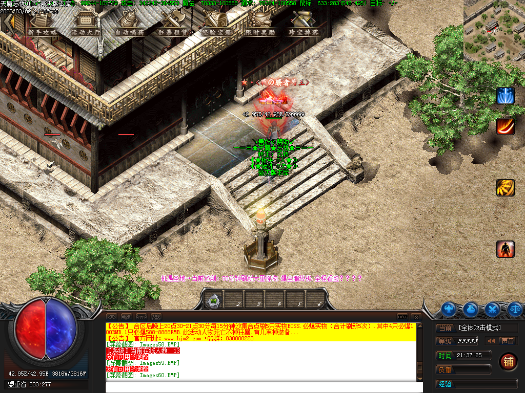 游戏管理⑤ →所有地图在开区6小时后关闭.通天宝藏二层在开区4小时后准时开放.必爆实物8888RMB点