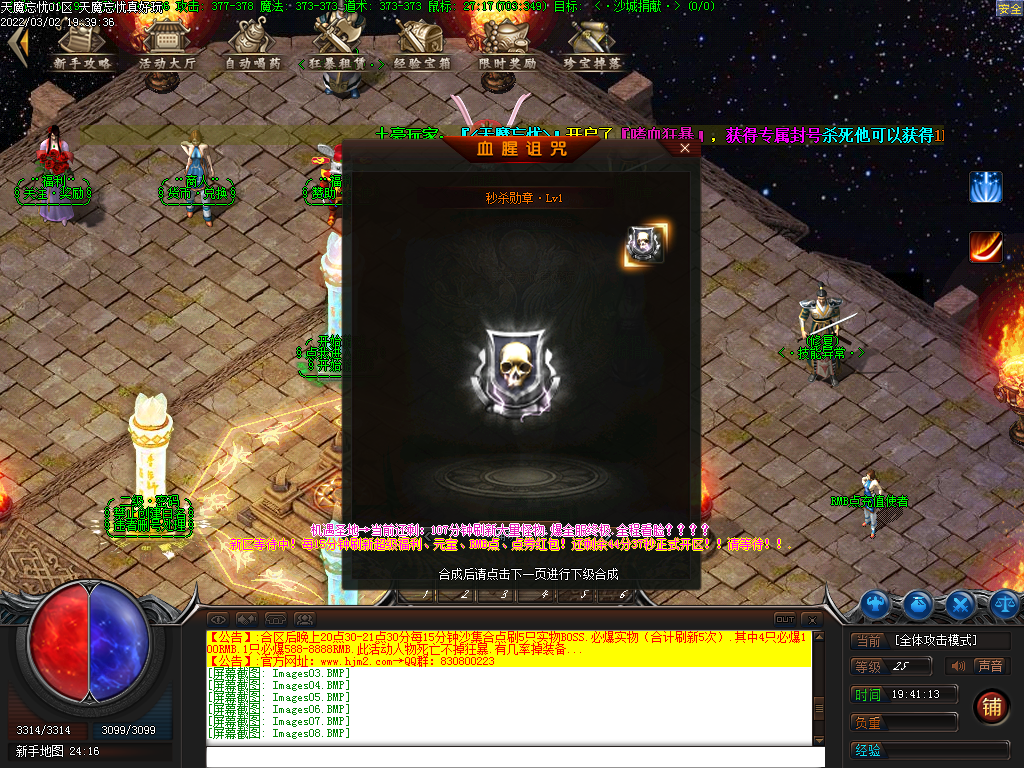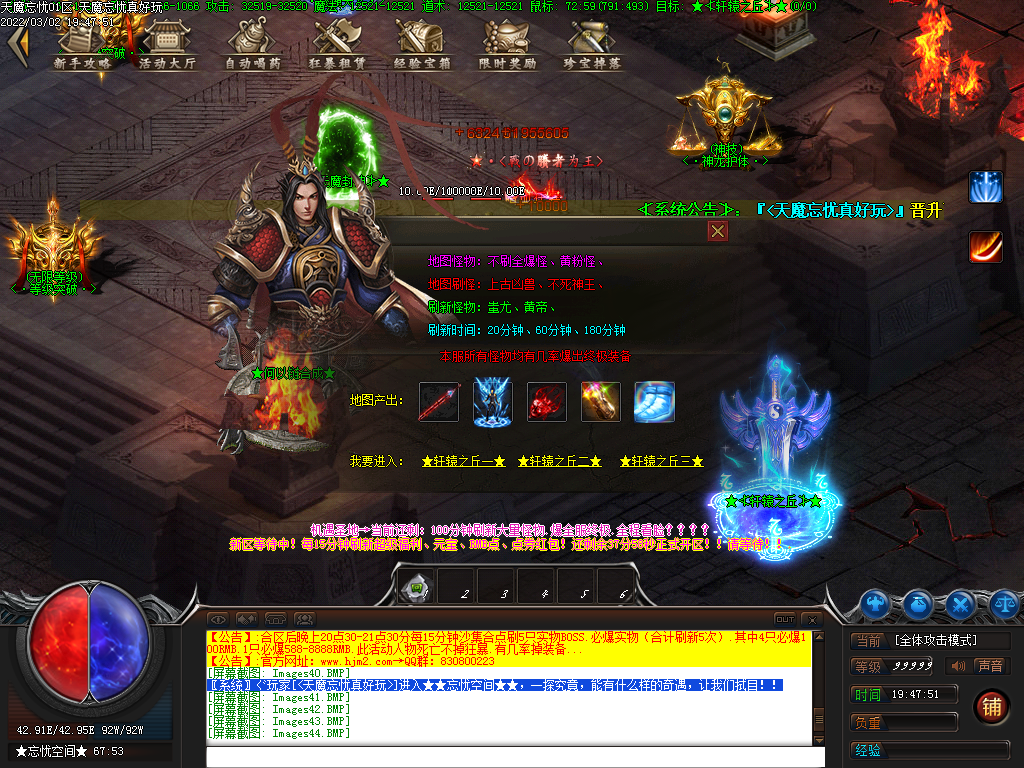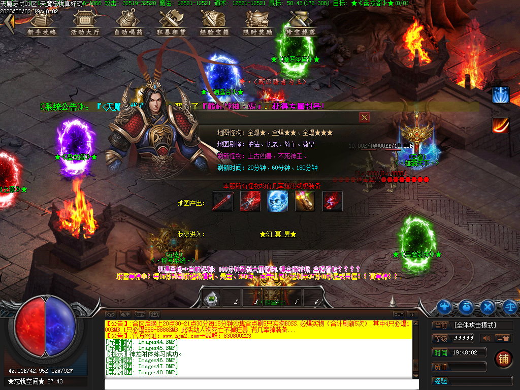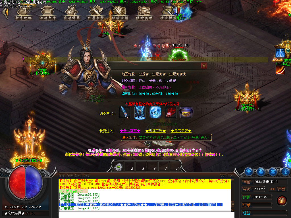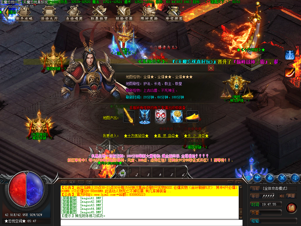 全服刷新④ → ●●●上古凶兽●●● ●●●不死神王●●●/FCOLOR=249> 时间:60分钟