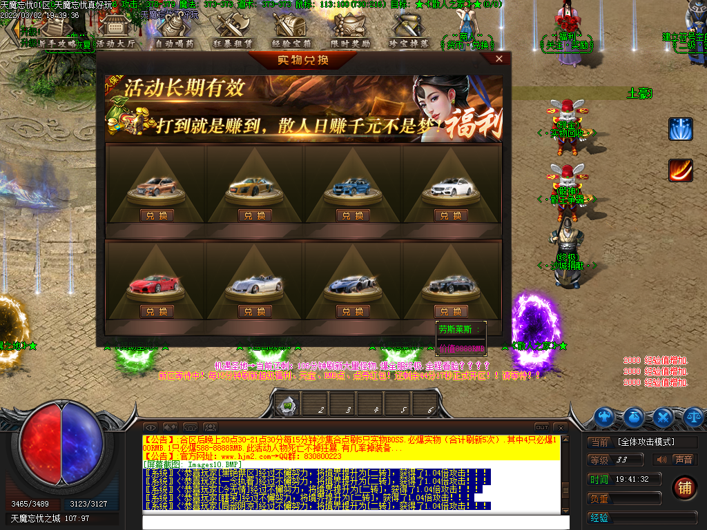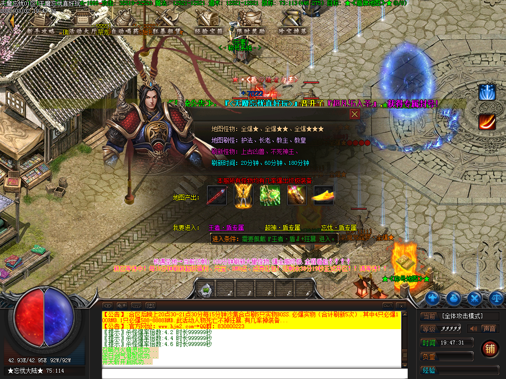 游戏管理④ →本服人人可爆终极.满级保底个人副本终极武器+实物8888RMB点.摆摊在白日门建商铺