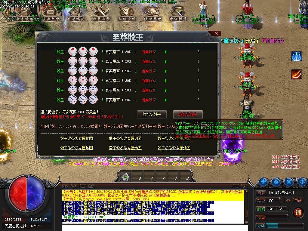 全服刷新⑥ → ★★★骰王·必爆★★★ 骰王第33、66、99次随机刷新到1-6骰王地图