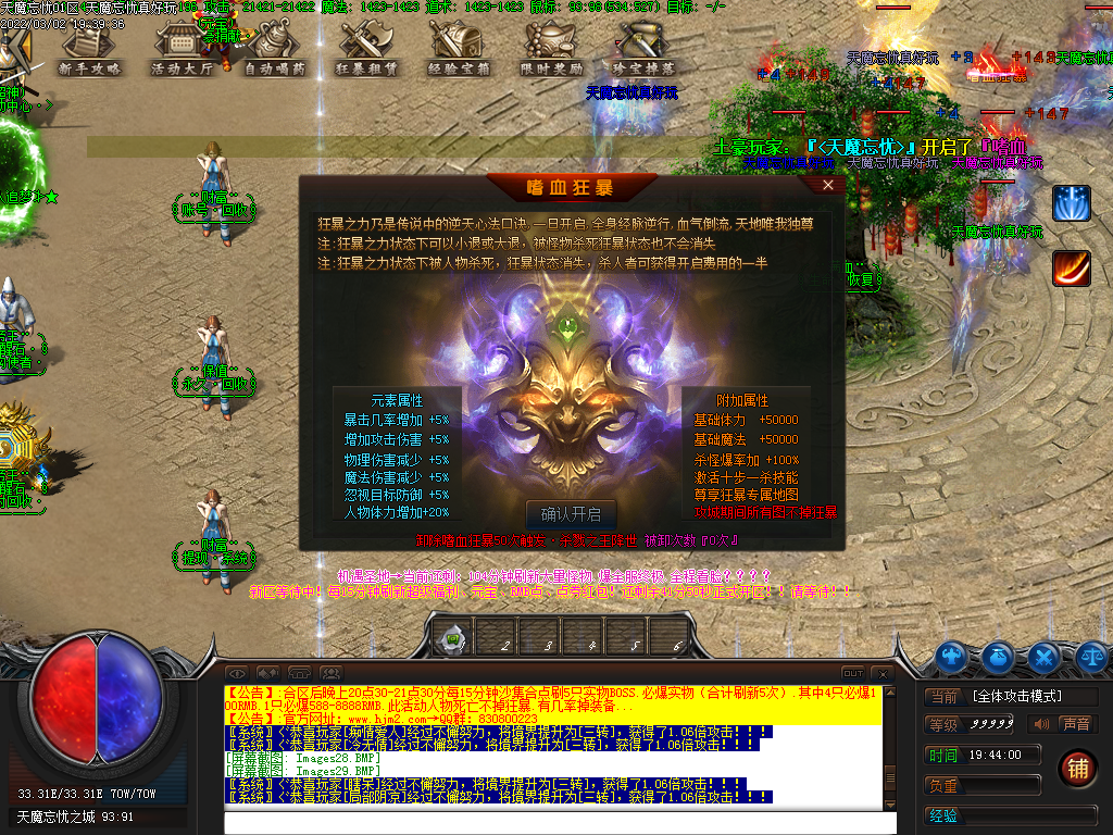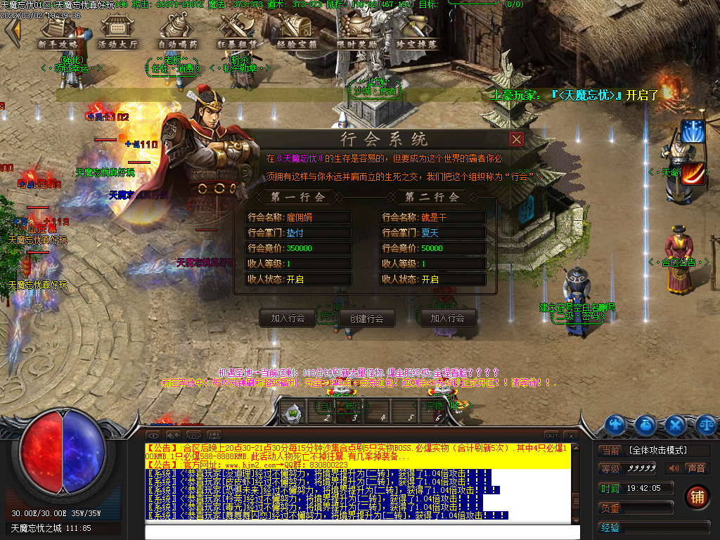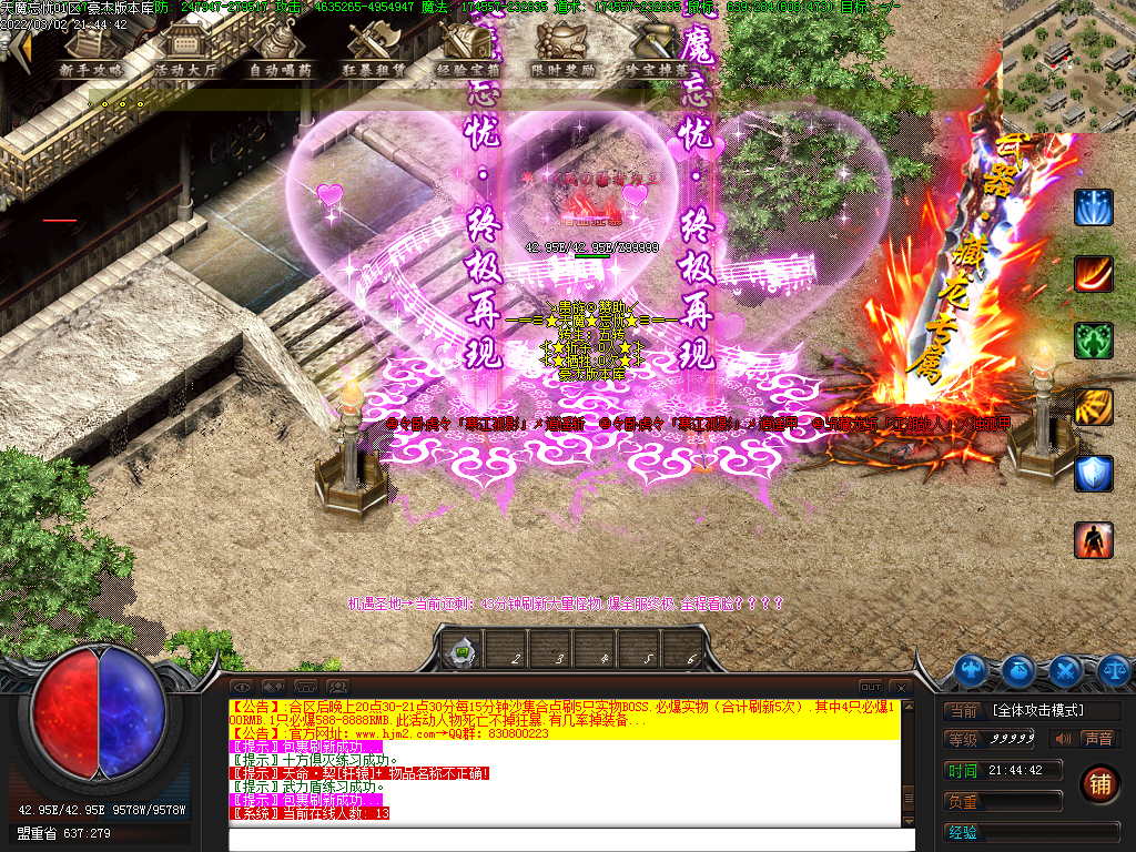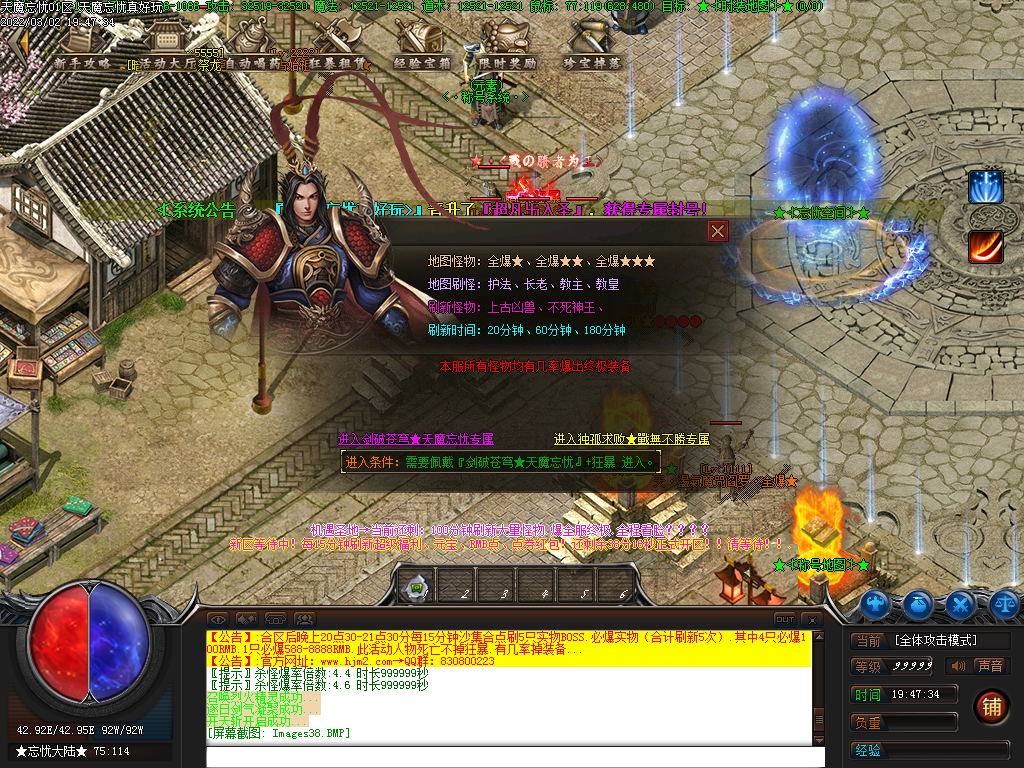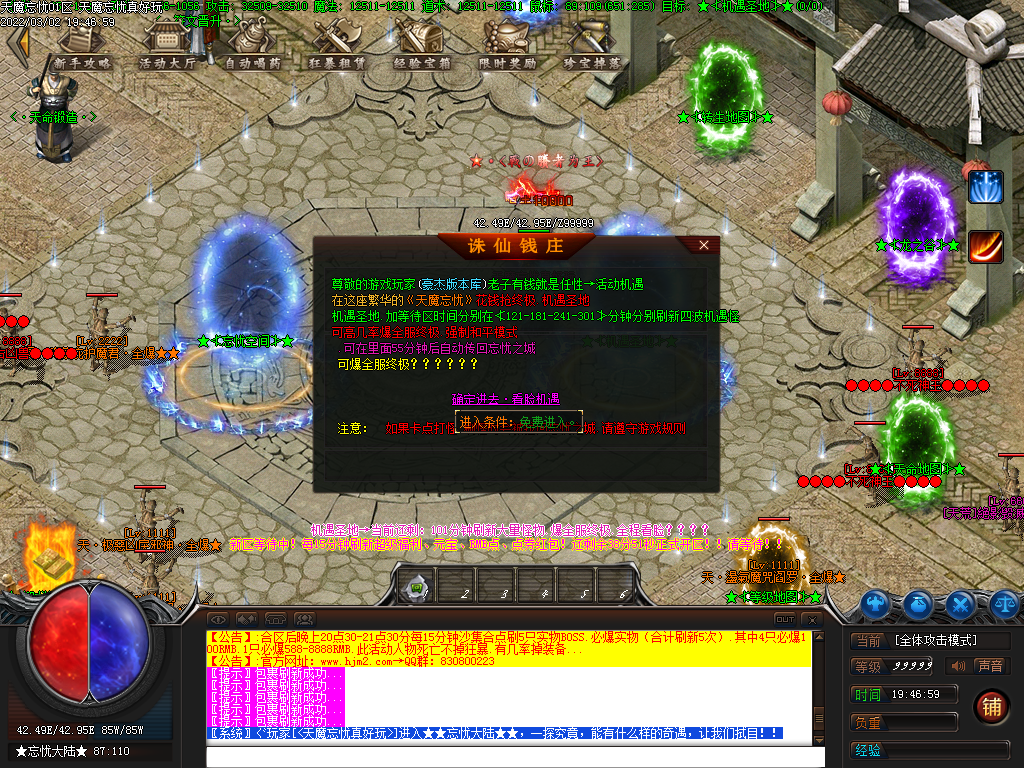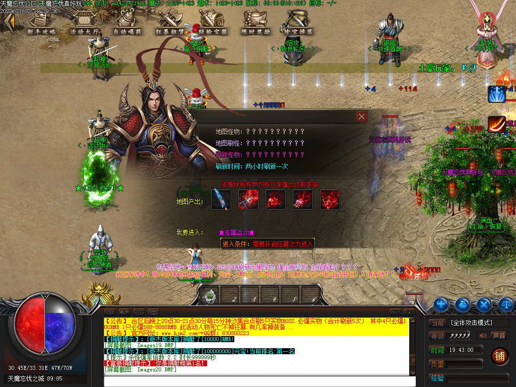 全服刷新② → ◆◆◆天魔机遇BOSS◆◆◆ 忘忧大陆.机遇圣地. 时间:120分钟