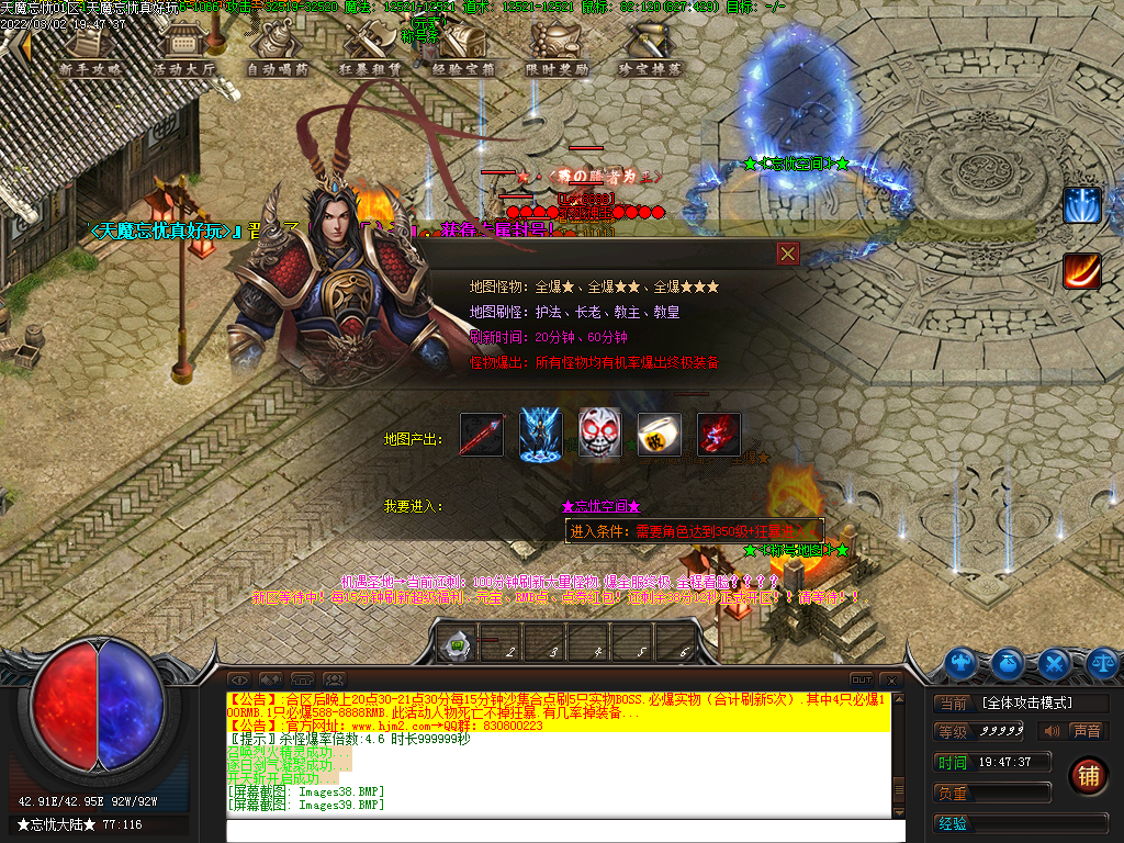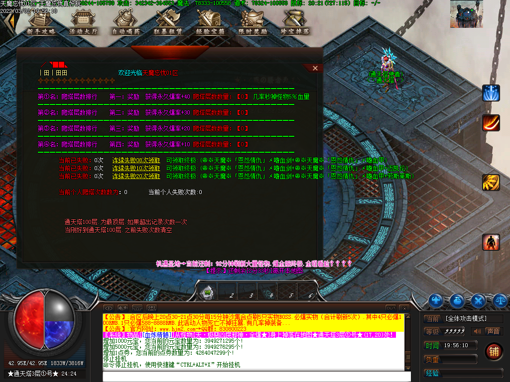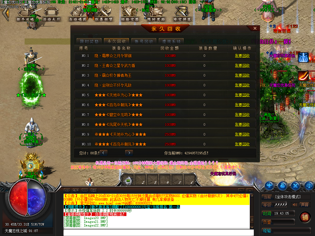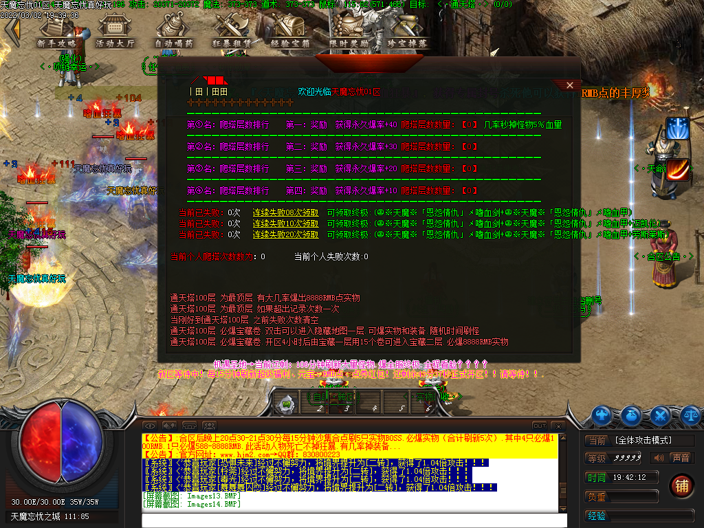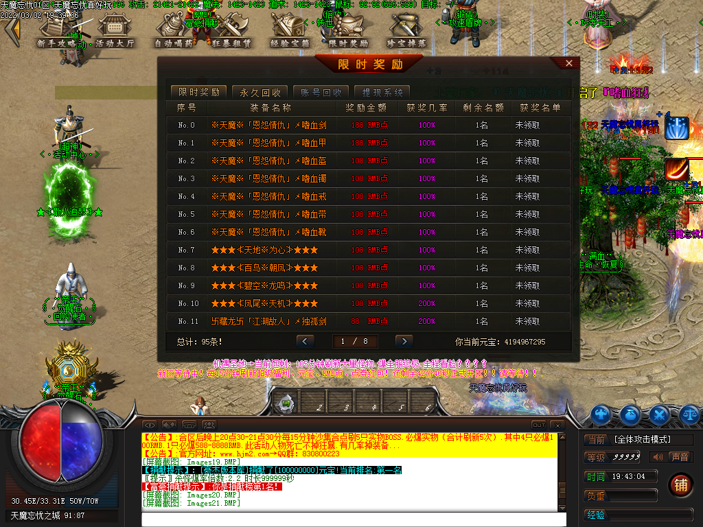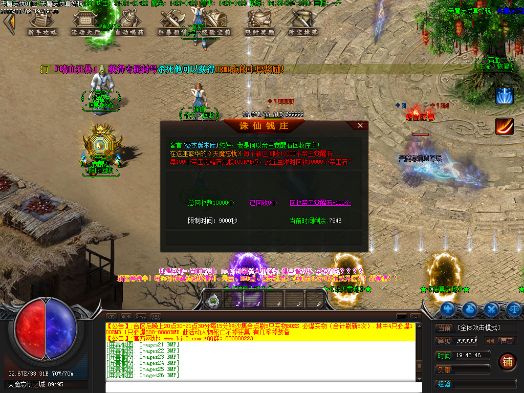 开区端-天魔忘忧神器单职业传奇版本-带假人带光柱-实物回收-限时奖励-通天塔失败奖励-自助沙城奖励发放-自动拾取