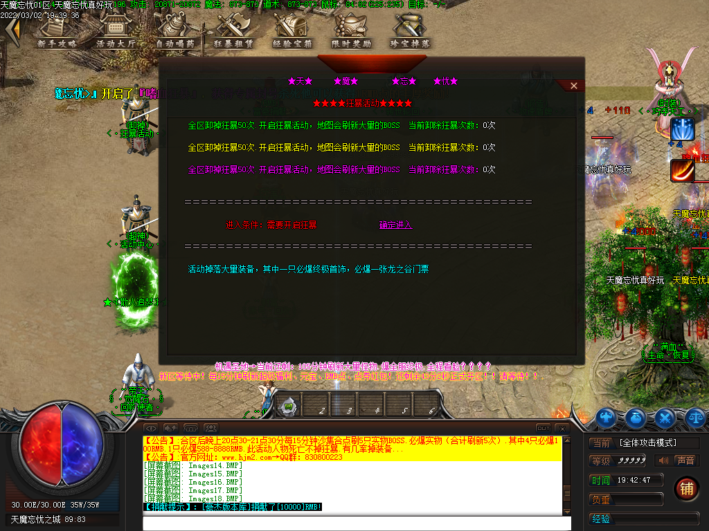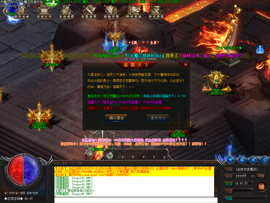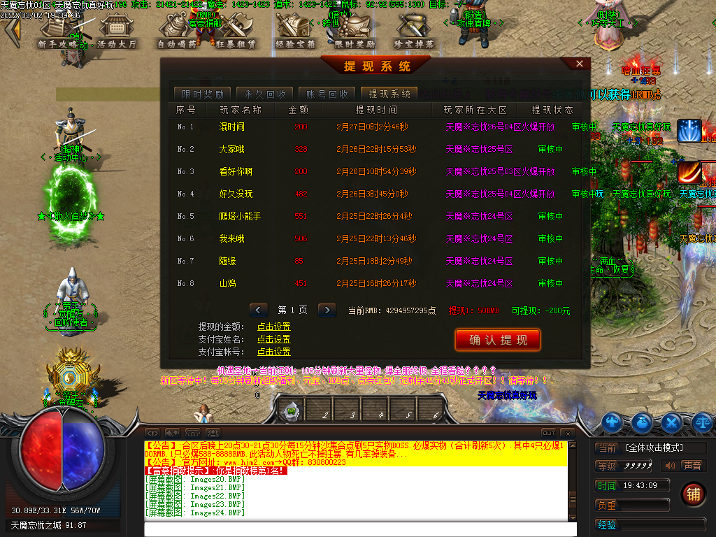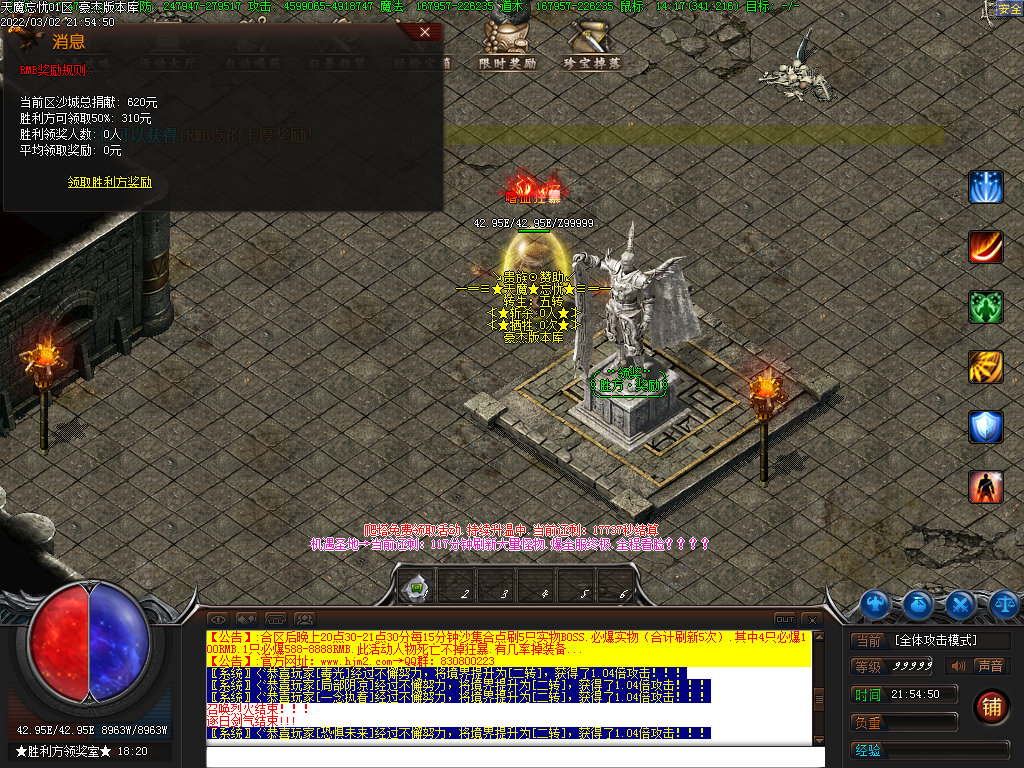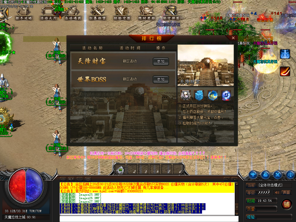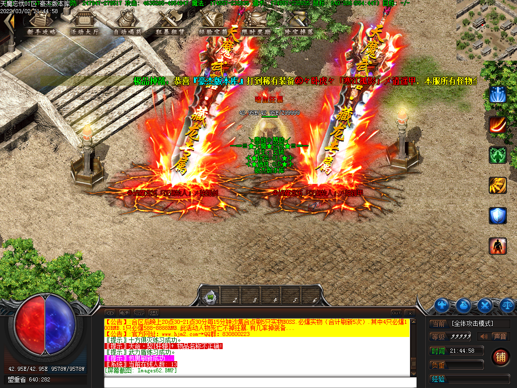 开区端-天魔忘忧神器单职业传奇版本-带假人带光柱-实物回收-限时奖励-通天塔失败奖励-自助沙城奖励发放-自动拾取