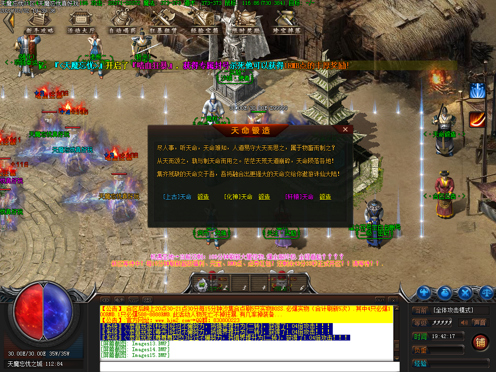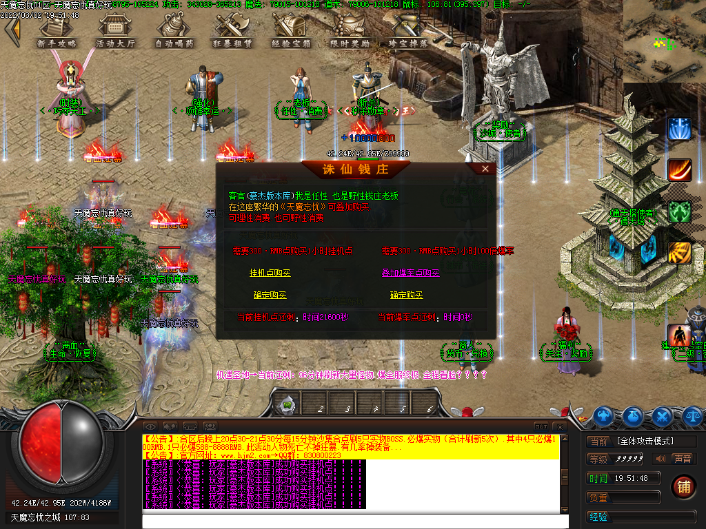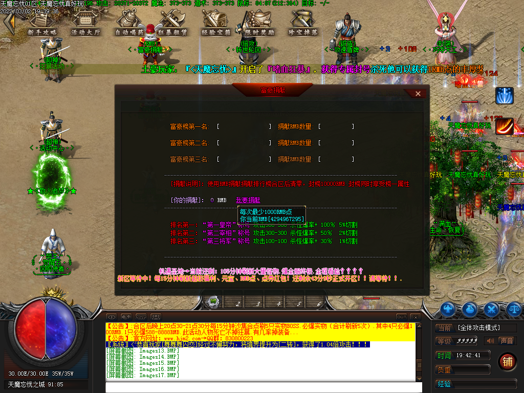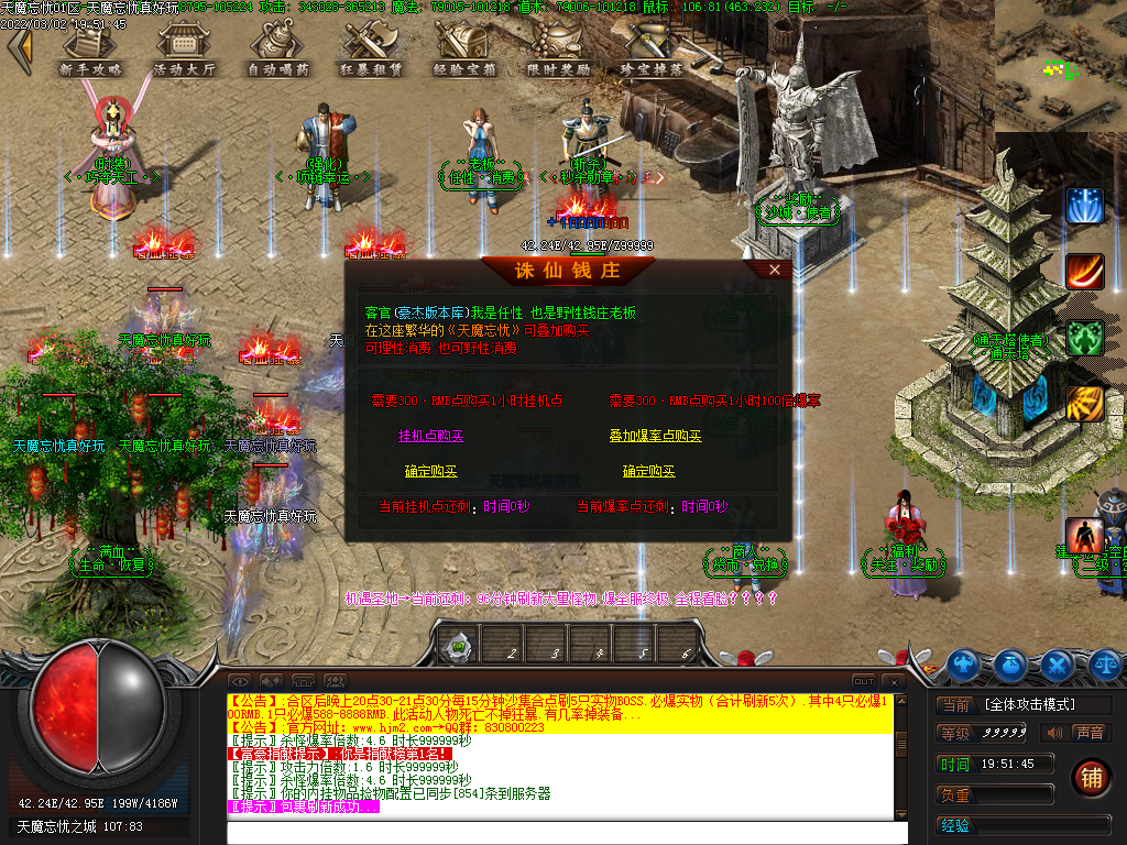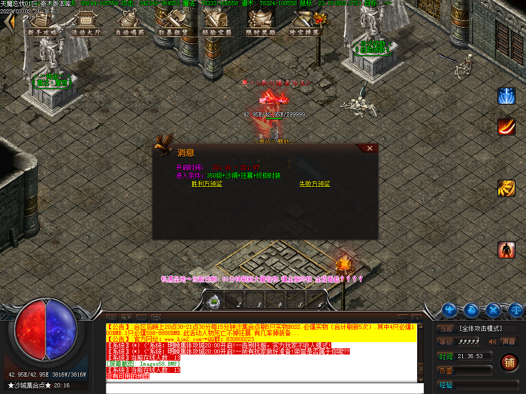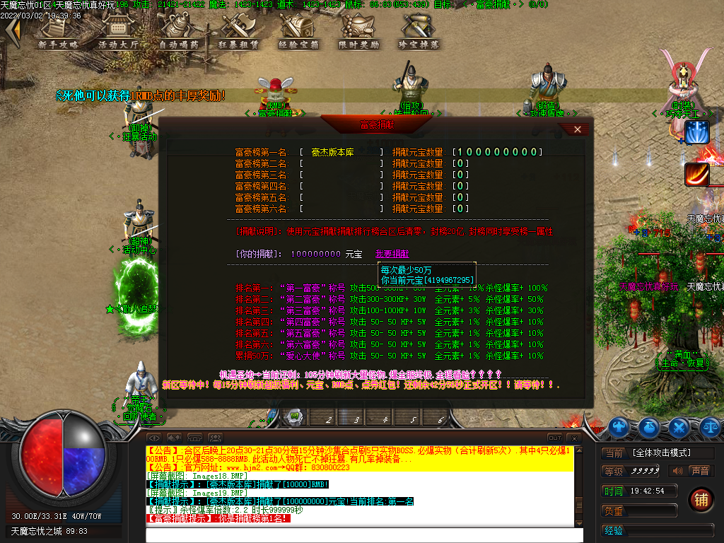 开区端-天魔忘忧神器单职业传奇版本-带假人带光柱-实物回收-限时奖励-通天塔失败奖励-自助沙城奖励发放-自动拾取