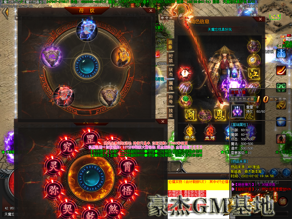 ============封神+称号+盾牌+点霸+项链+符文+等级+机遇→各地图爆终极.每条线路产出不冲突===========