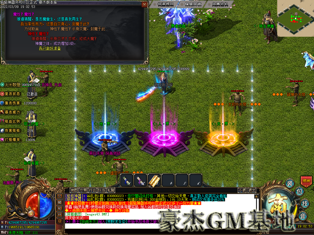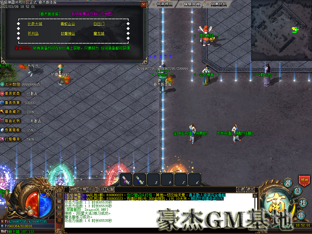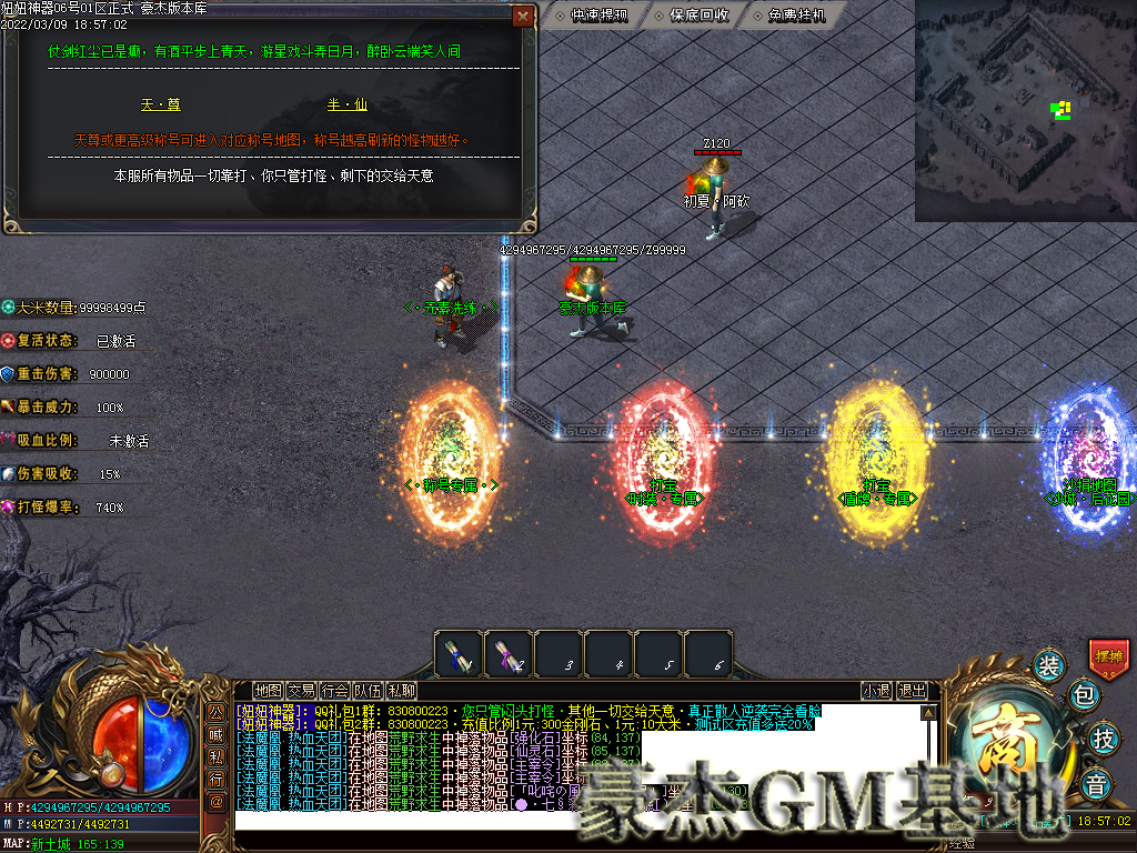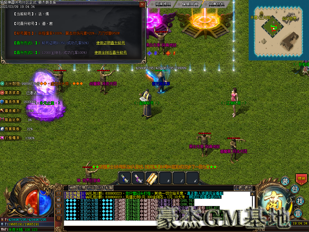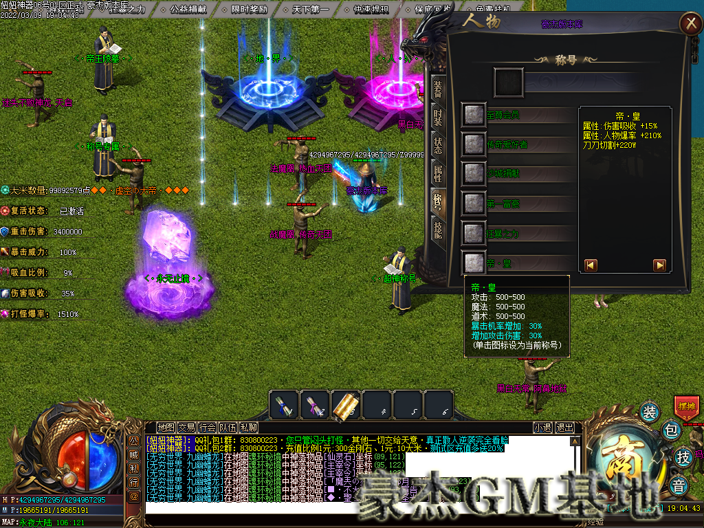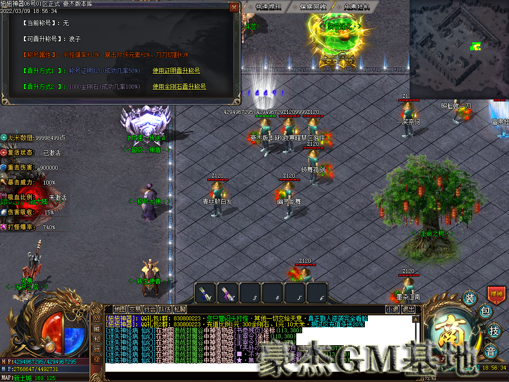 人继续升称号,升到“魔·主”称号为止,称号加大量爆率和刀刀切割。