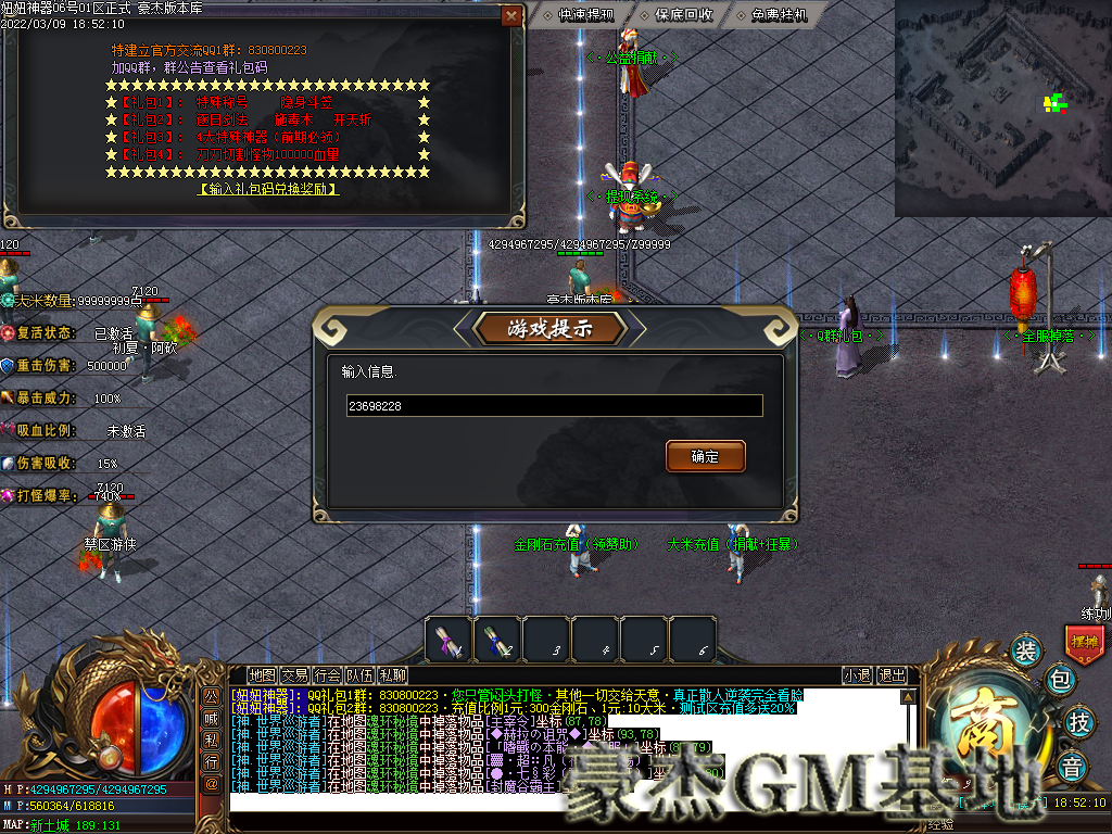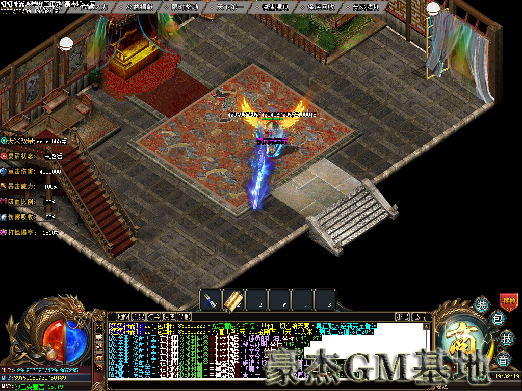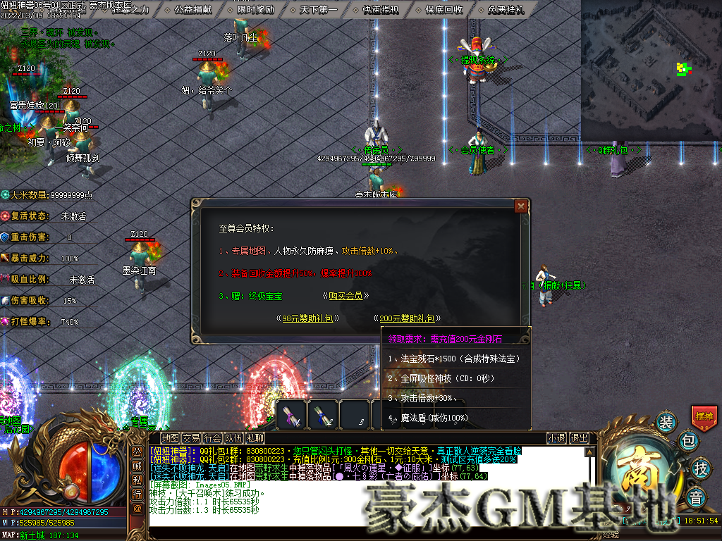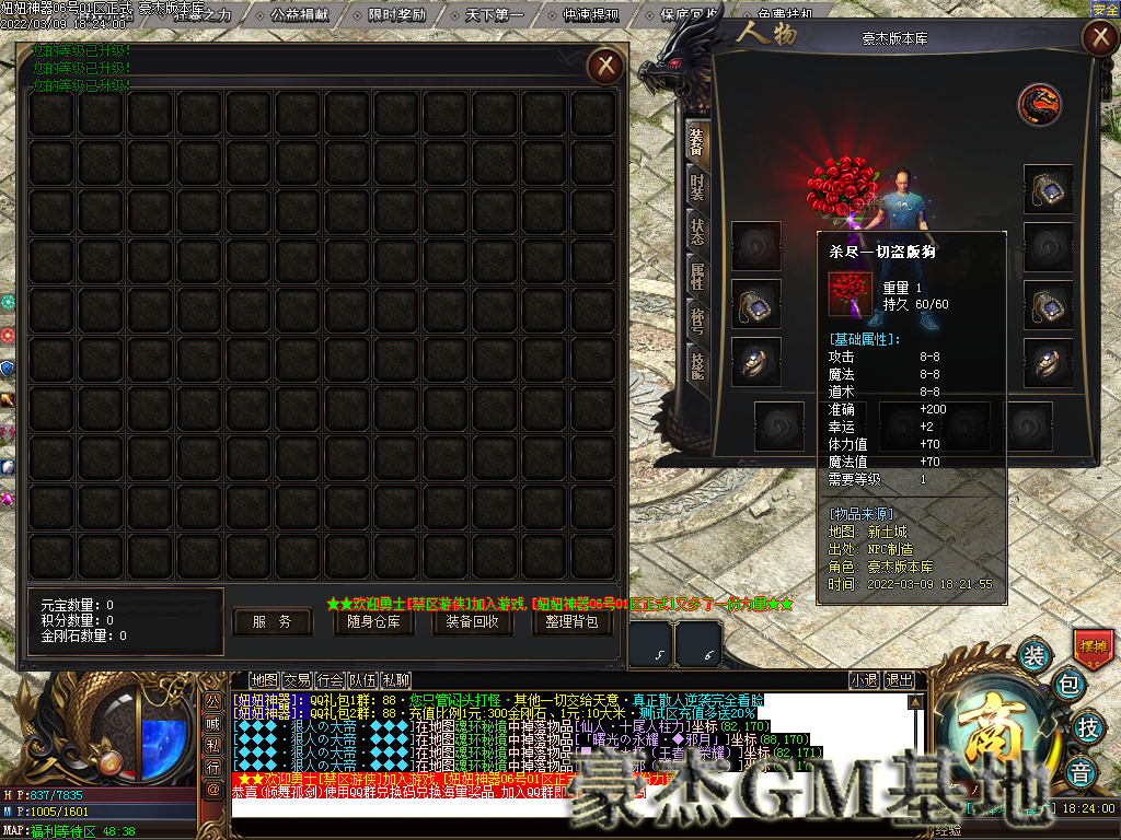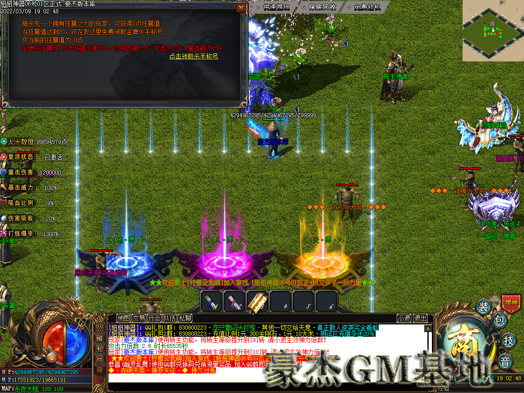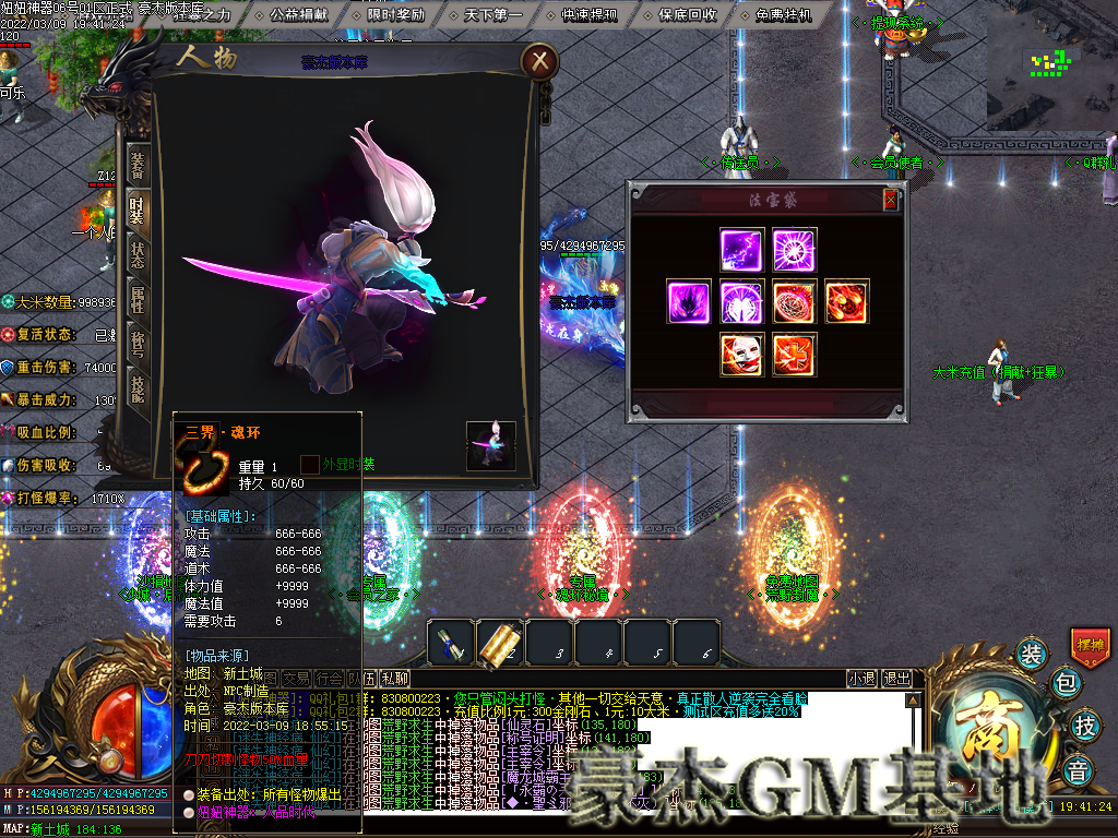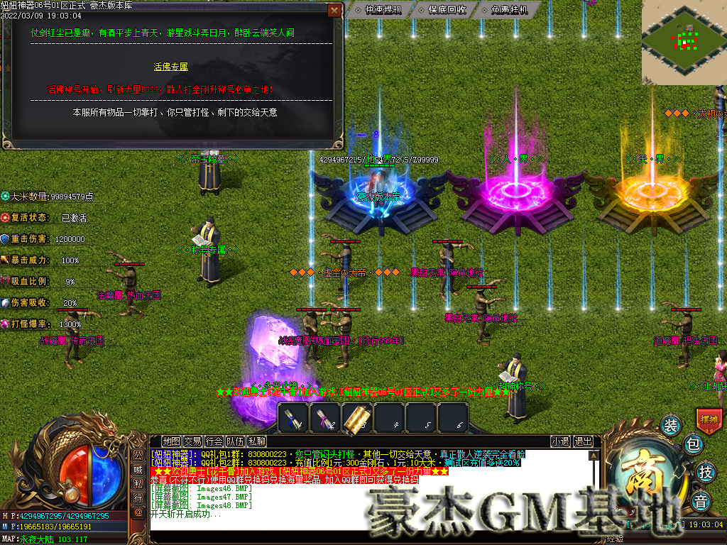 人继续升称号,升到“魔·主”称号为止,称号加大量爆率和刀刀切割。
