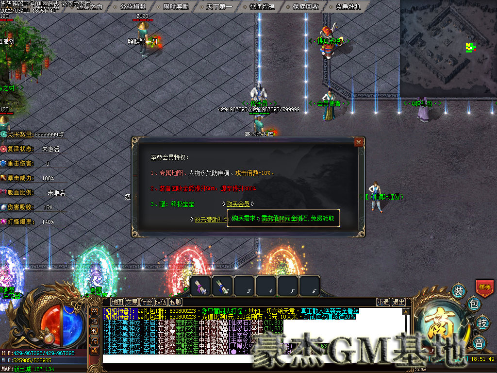会员带防麻痹,爆率+50%,攻击倍数+1.5倍,前期逆袭好帮手,