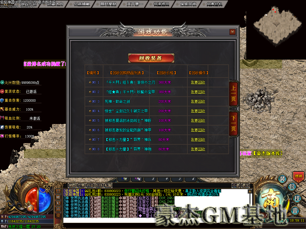 付费购买-独家大服妞妞神器打金单职业传奇版本-带假人-PG插件-光柱-自动回收-沙城捐献