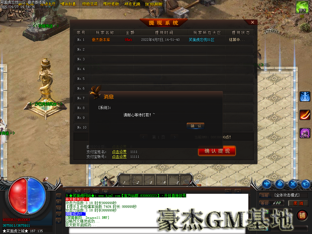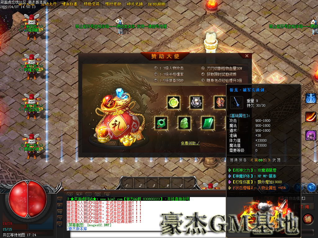 付费购买-笑面虎忘忧无限刀神器单职业传奇服务端-PG-带假人光柱-限时奖励-碎片兑换-打怪福利-银行系统-散人之家
