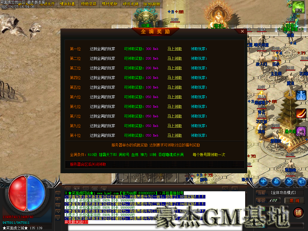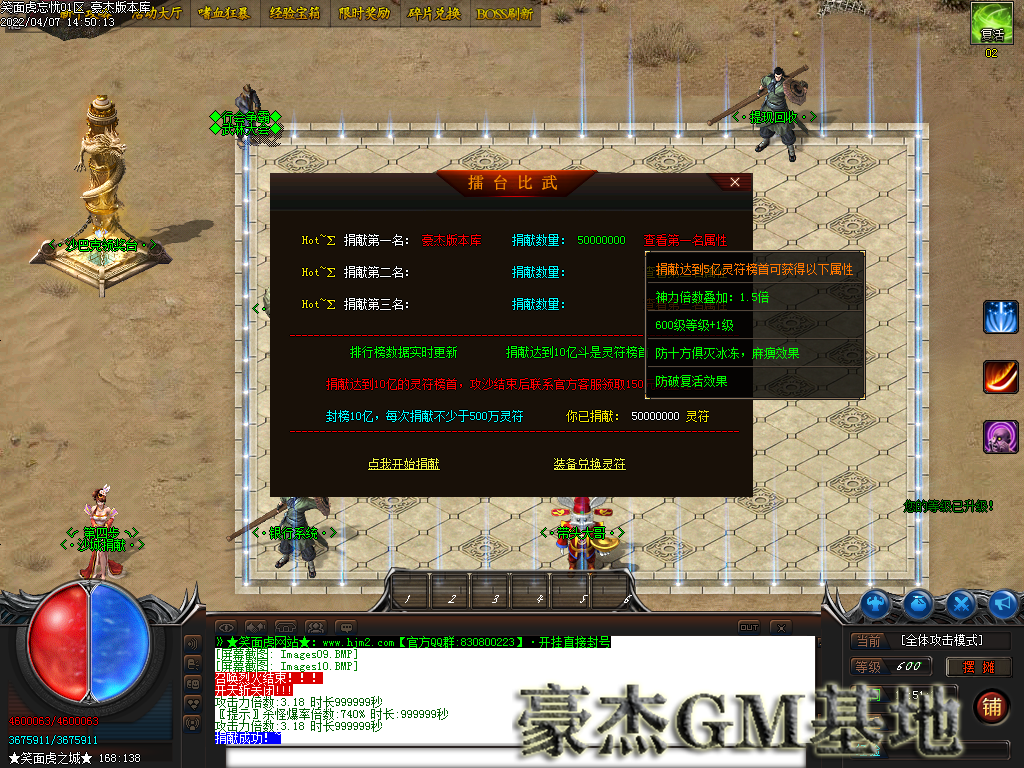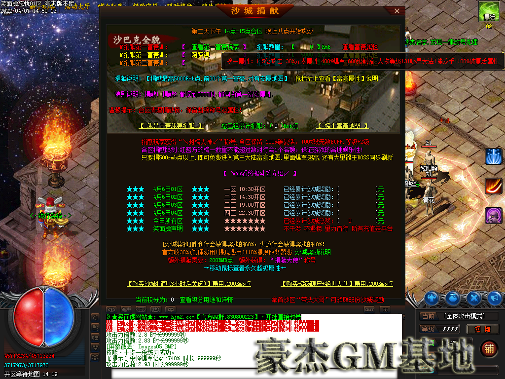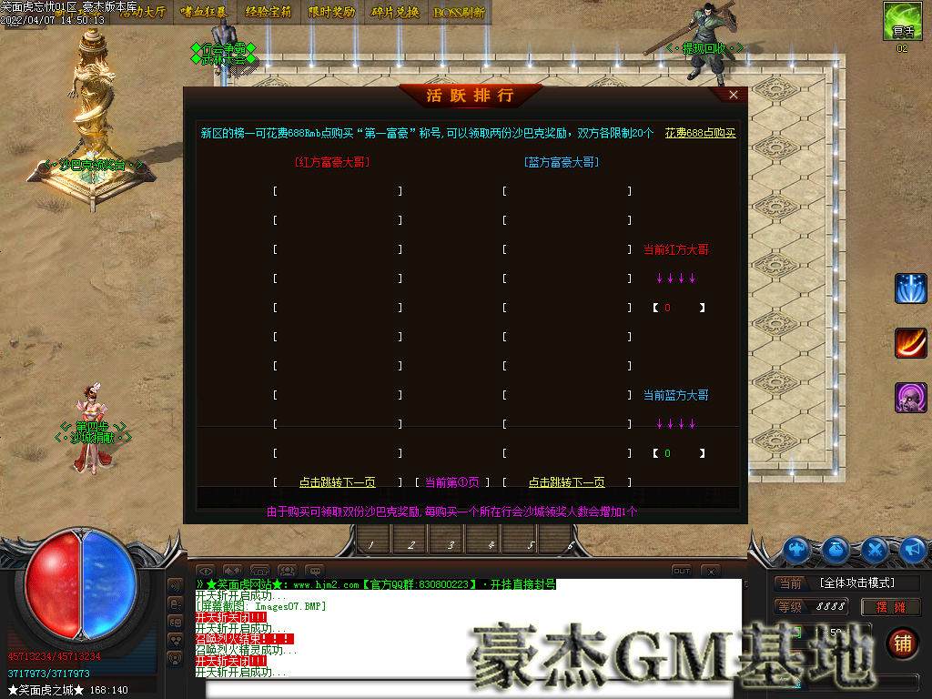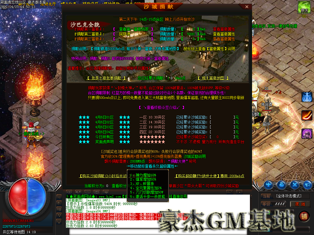 1:本服42米全满,沙城捐献20米,人物鞭尸20米,狂暴2米!