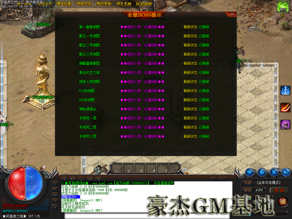 3:本服所有地图全部都有终极Boss,所有全爆!