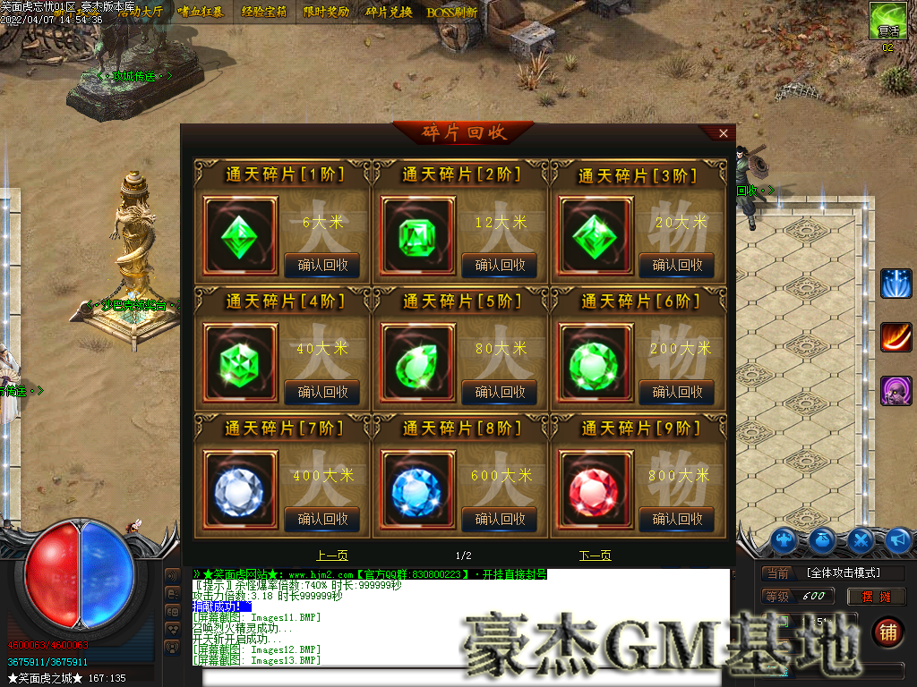 2:本服所有东西全靠打,GM不卖任何东西!