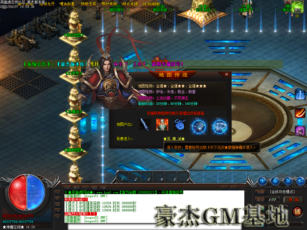 注:由于开区演示站点不定时更新更换版本 具体以本帖演示为准